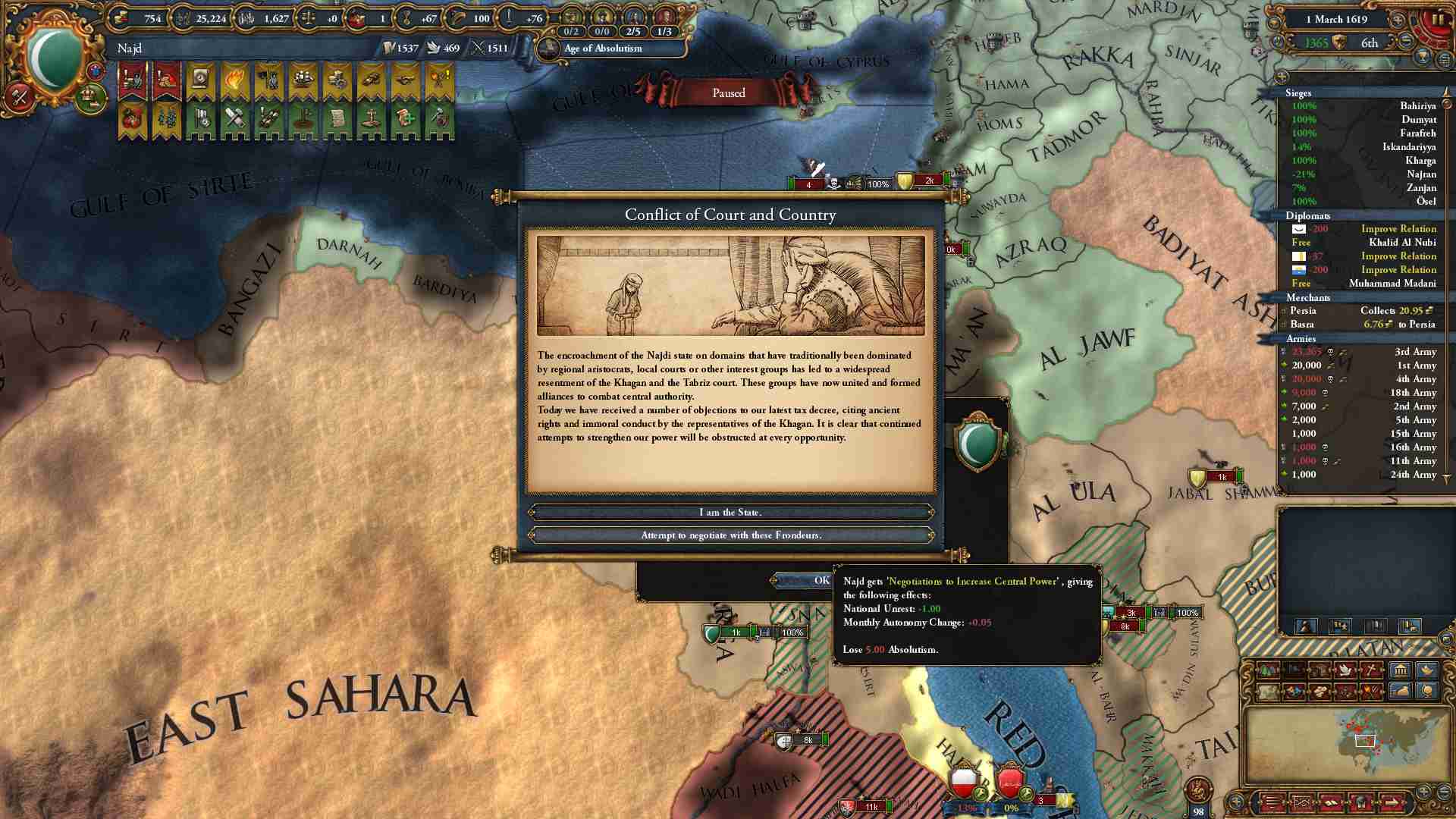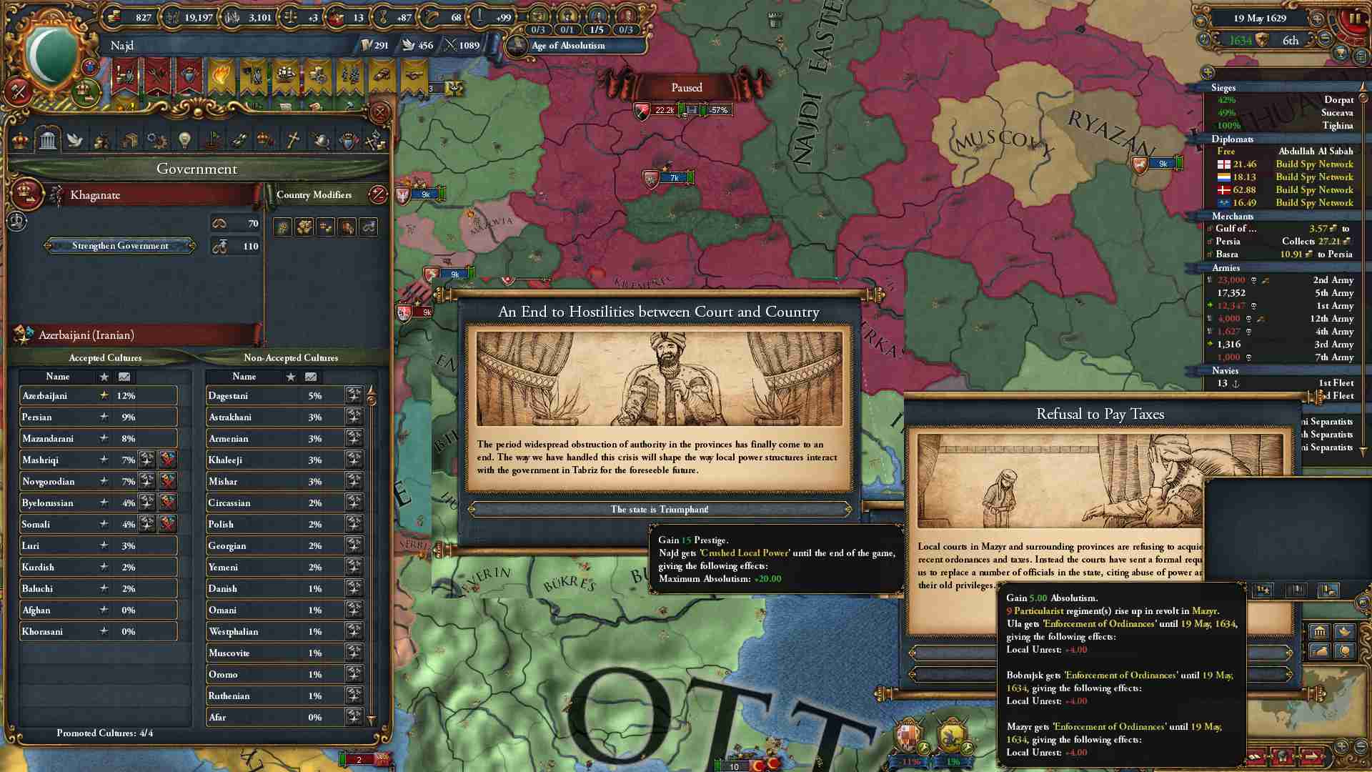 1626年7月 イベント"Supporters_of_the_Khagan"発生。絶対主義+5・人的資源+7730