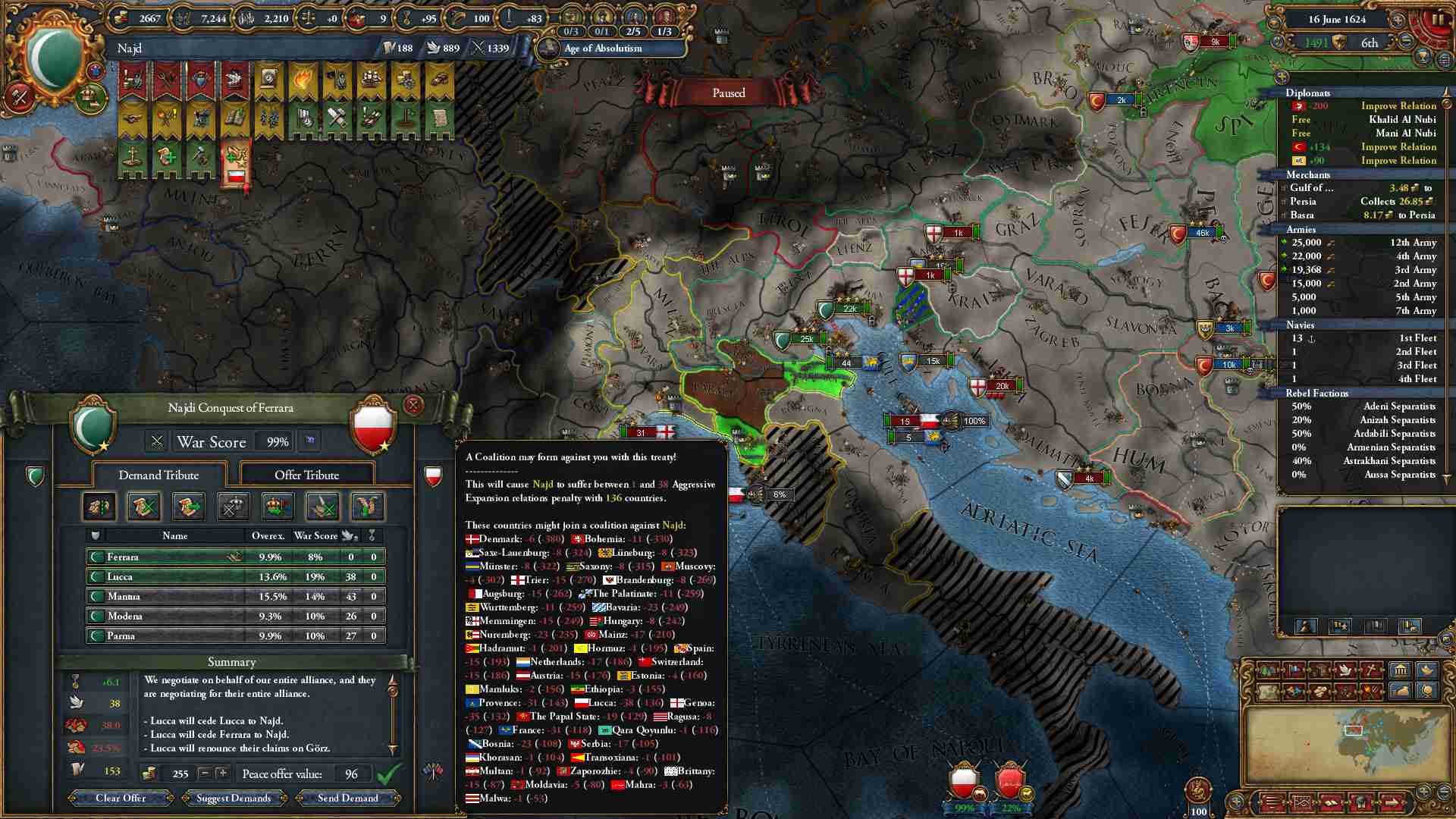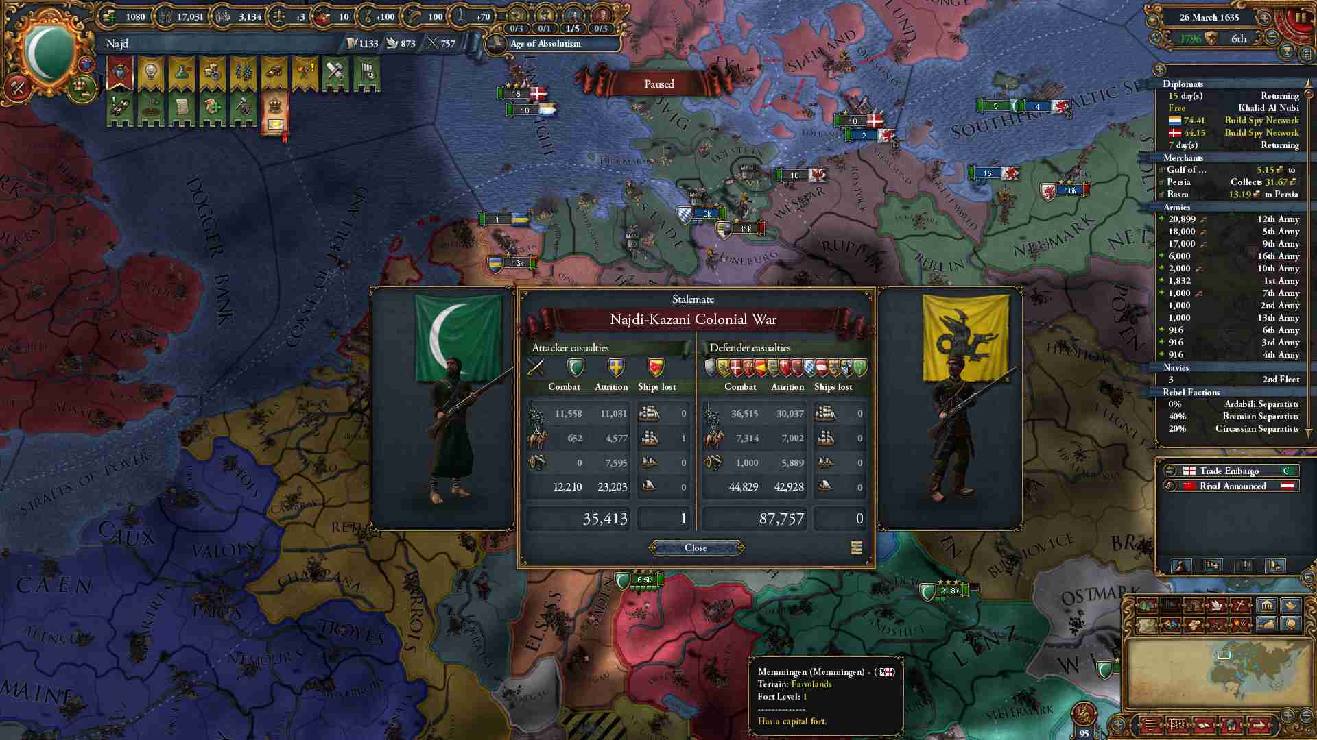 Najd領東欧から戻ってきたFrance軍本隊(41k)に、要塞包囲中の部隊(30k)が攻撃されそうになったので講和した