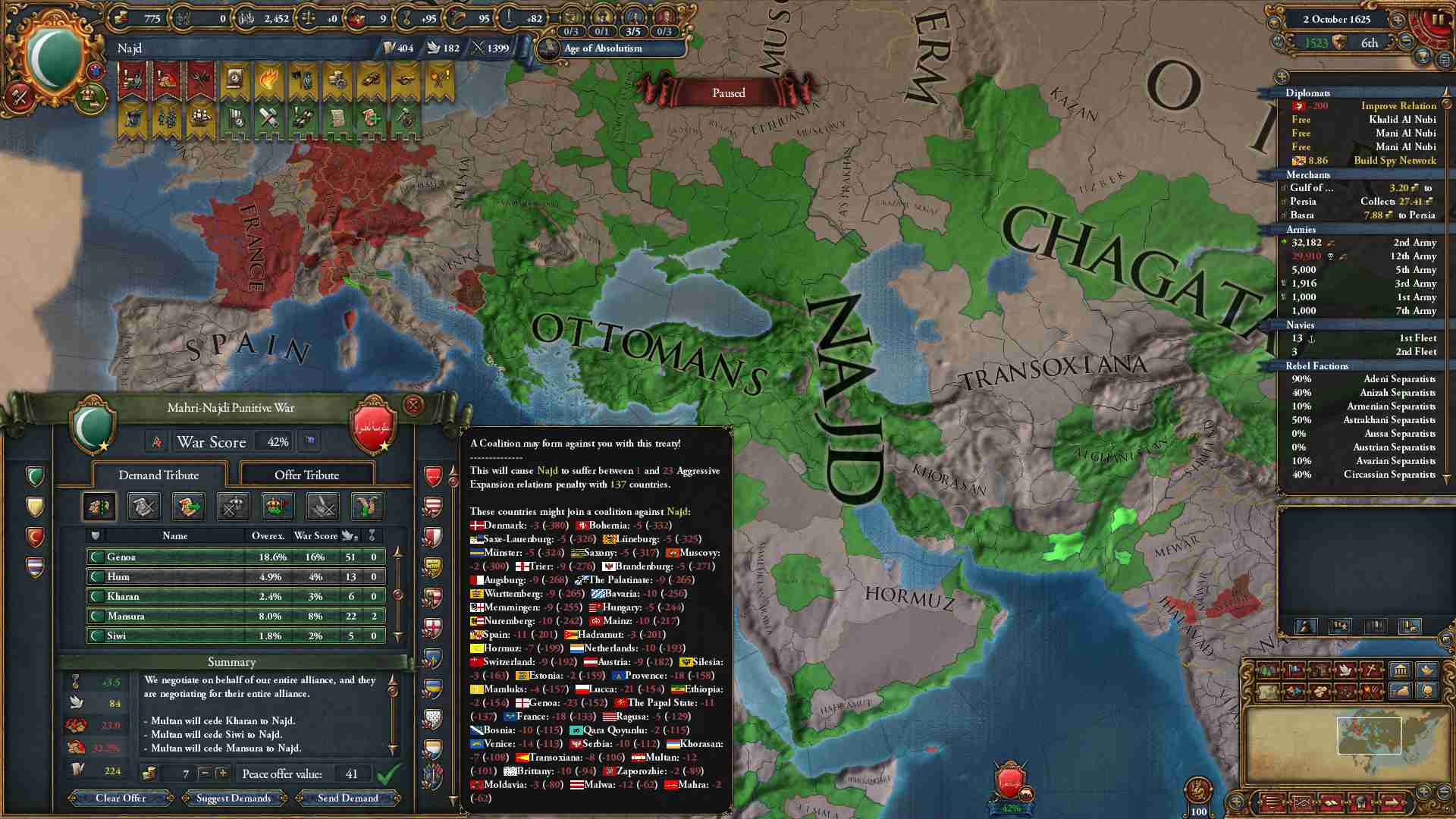 | 1656/10 | Najdの同盟国がSpain戦に参加 | Great_Britain・Morocco | 戦争が1つになったので参戦OKになった |