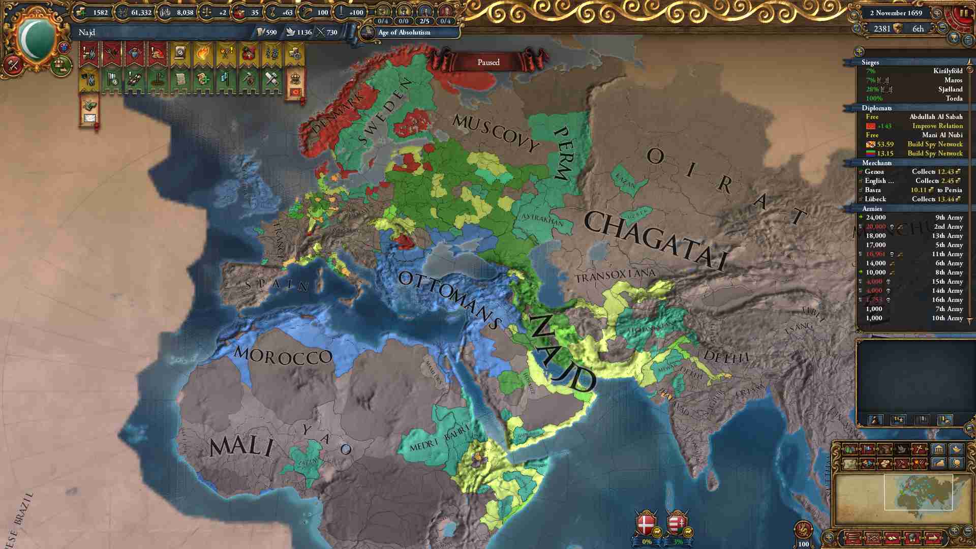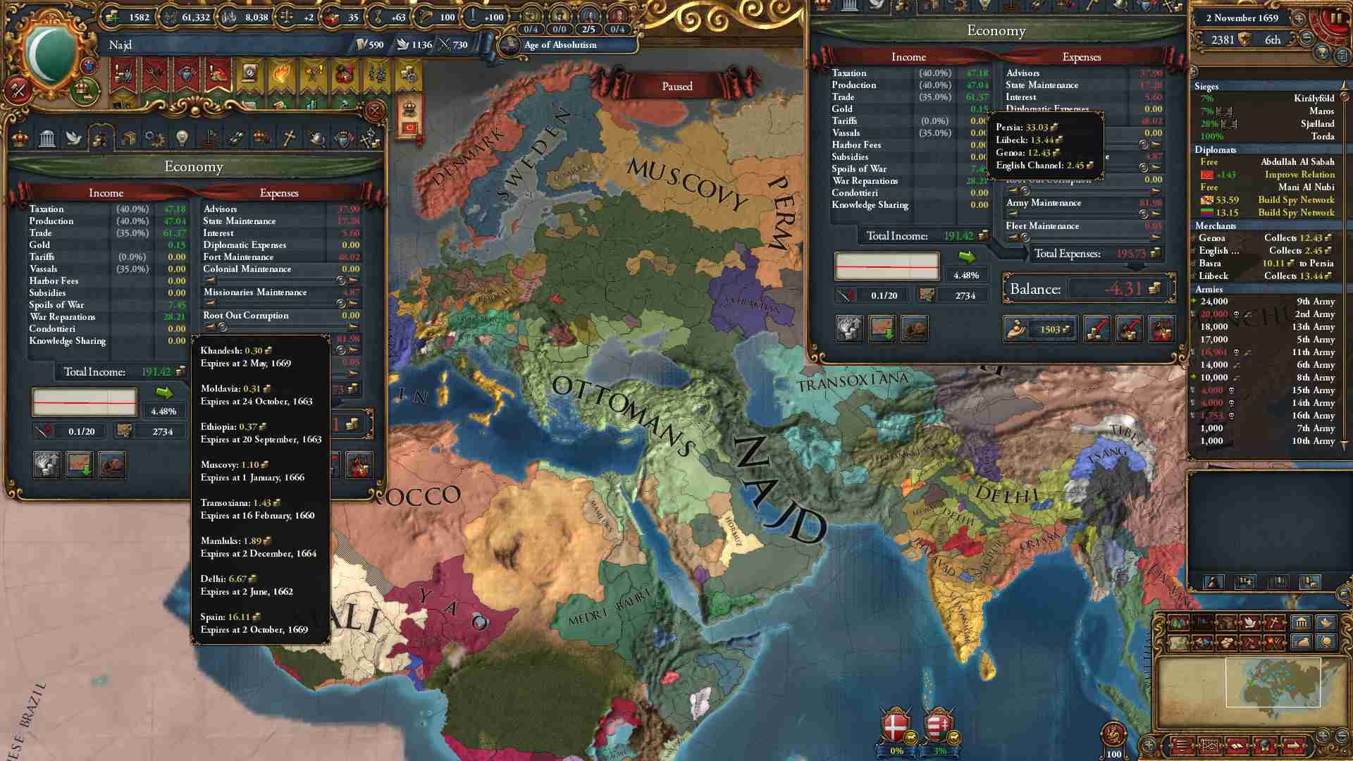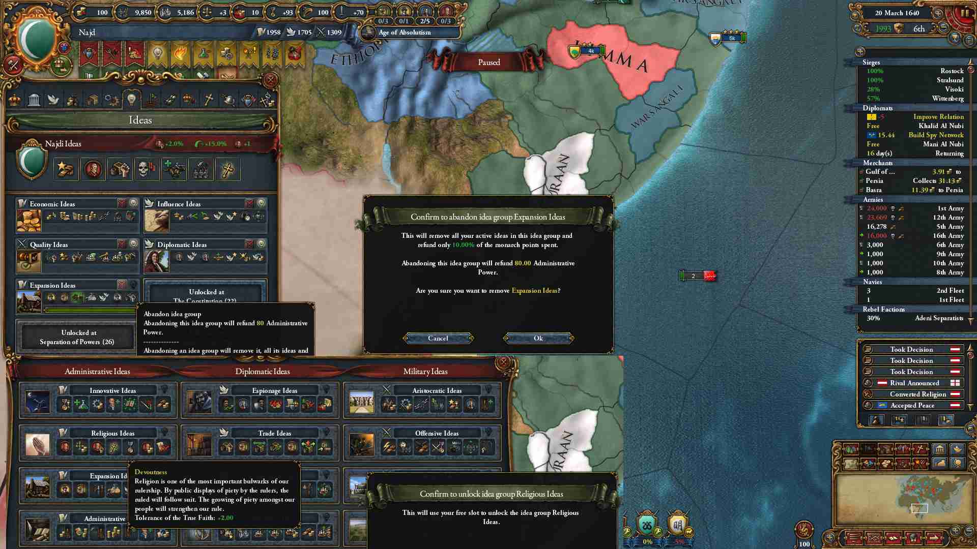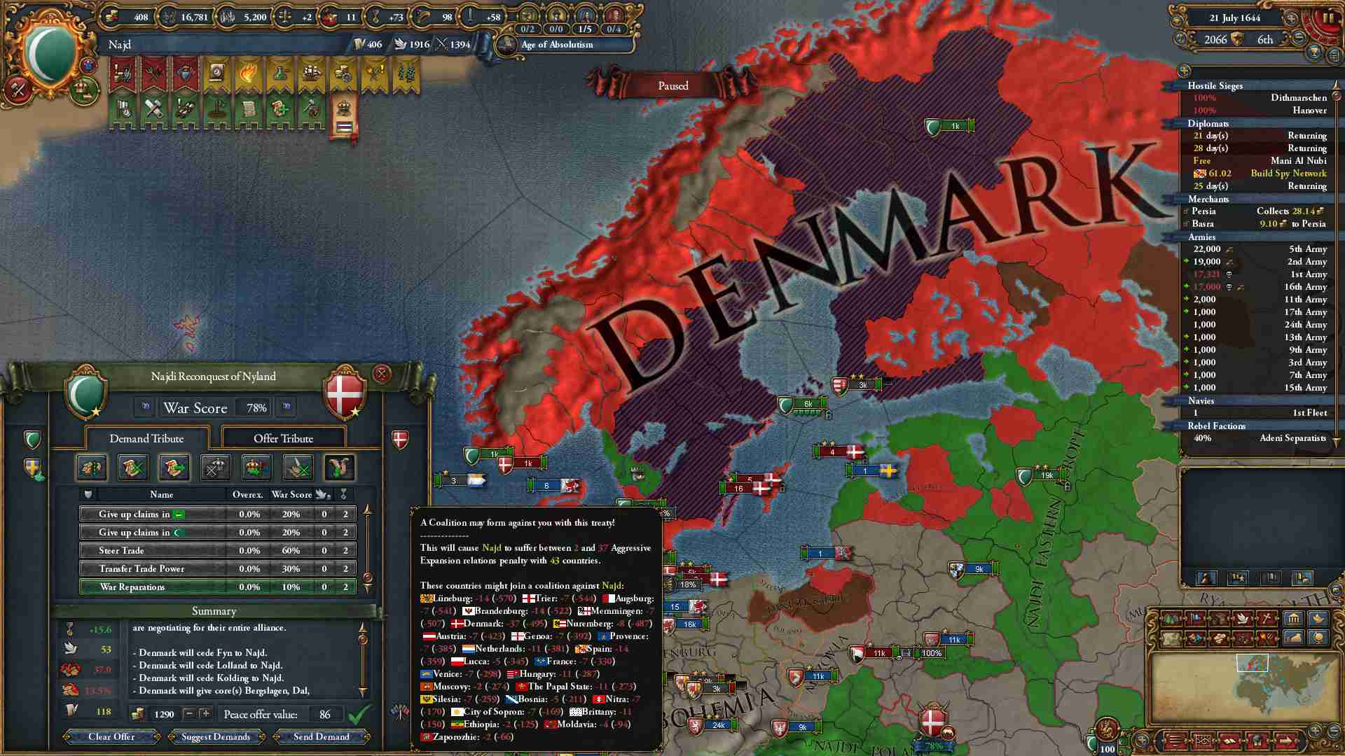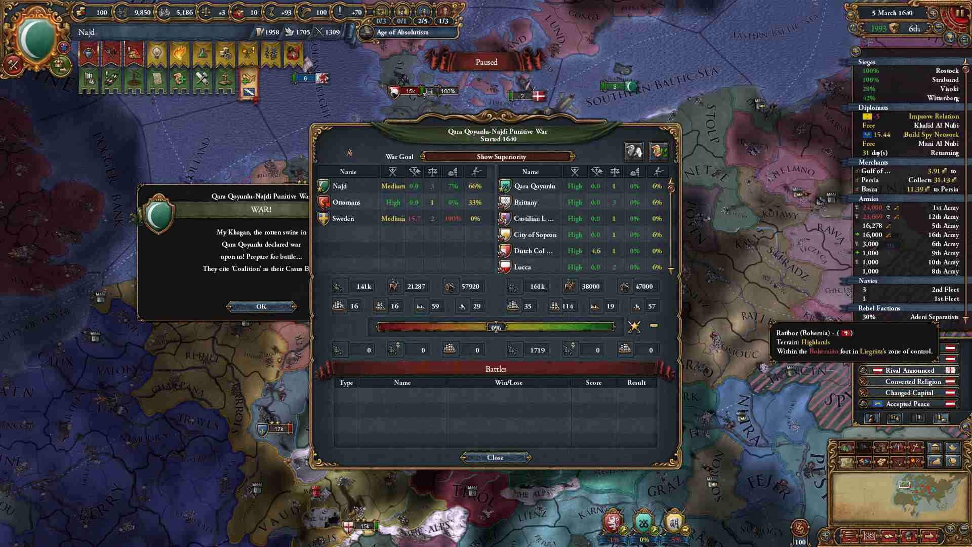 | 1652/08 | Netherlandsに宣戦布告 | 同盟国Franceは既にNajdと交戦中 | 英国海峡ノードのTPを増やしたかった |