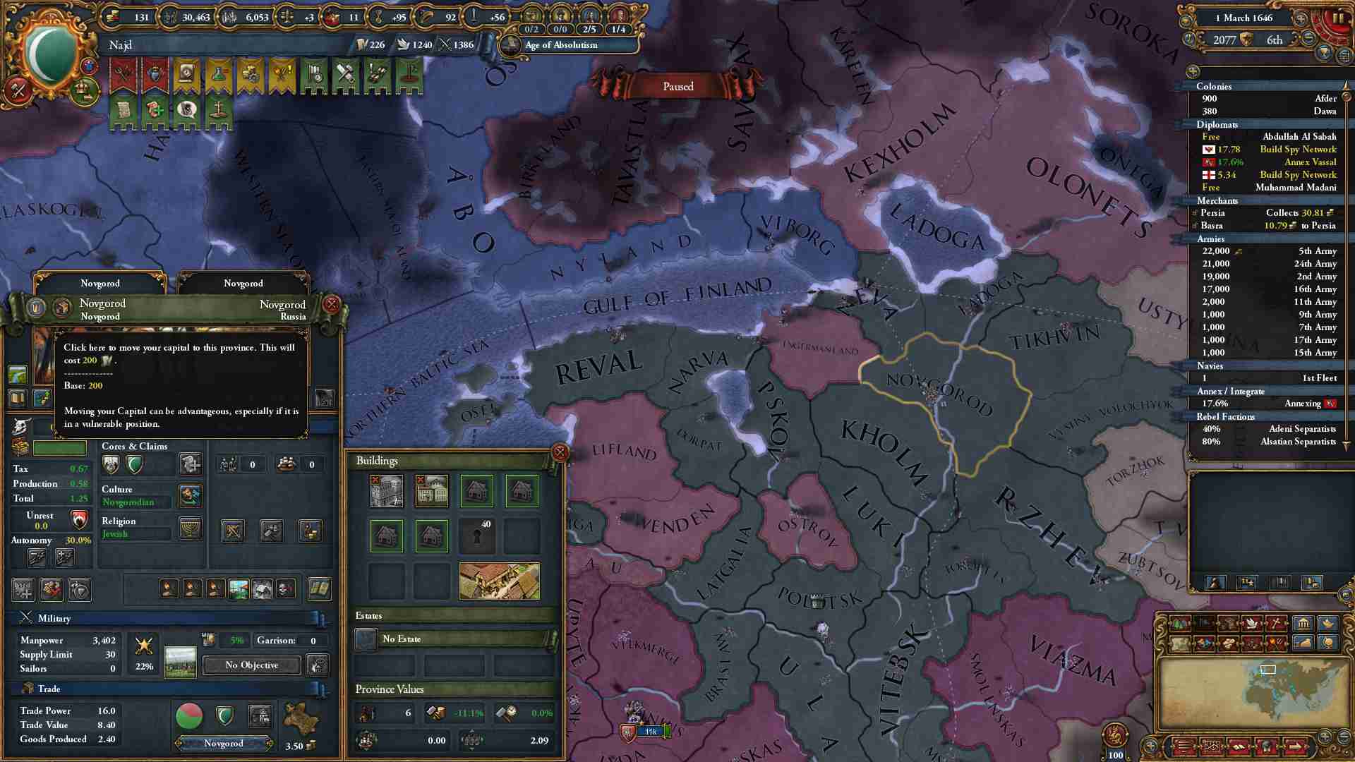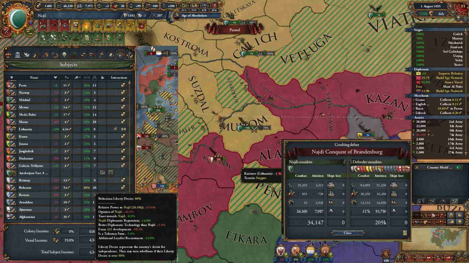 前月までに首都陥落→Muscovyと講和→"Exile"状態になる、が理想だった