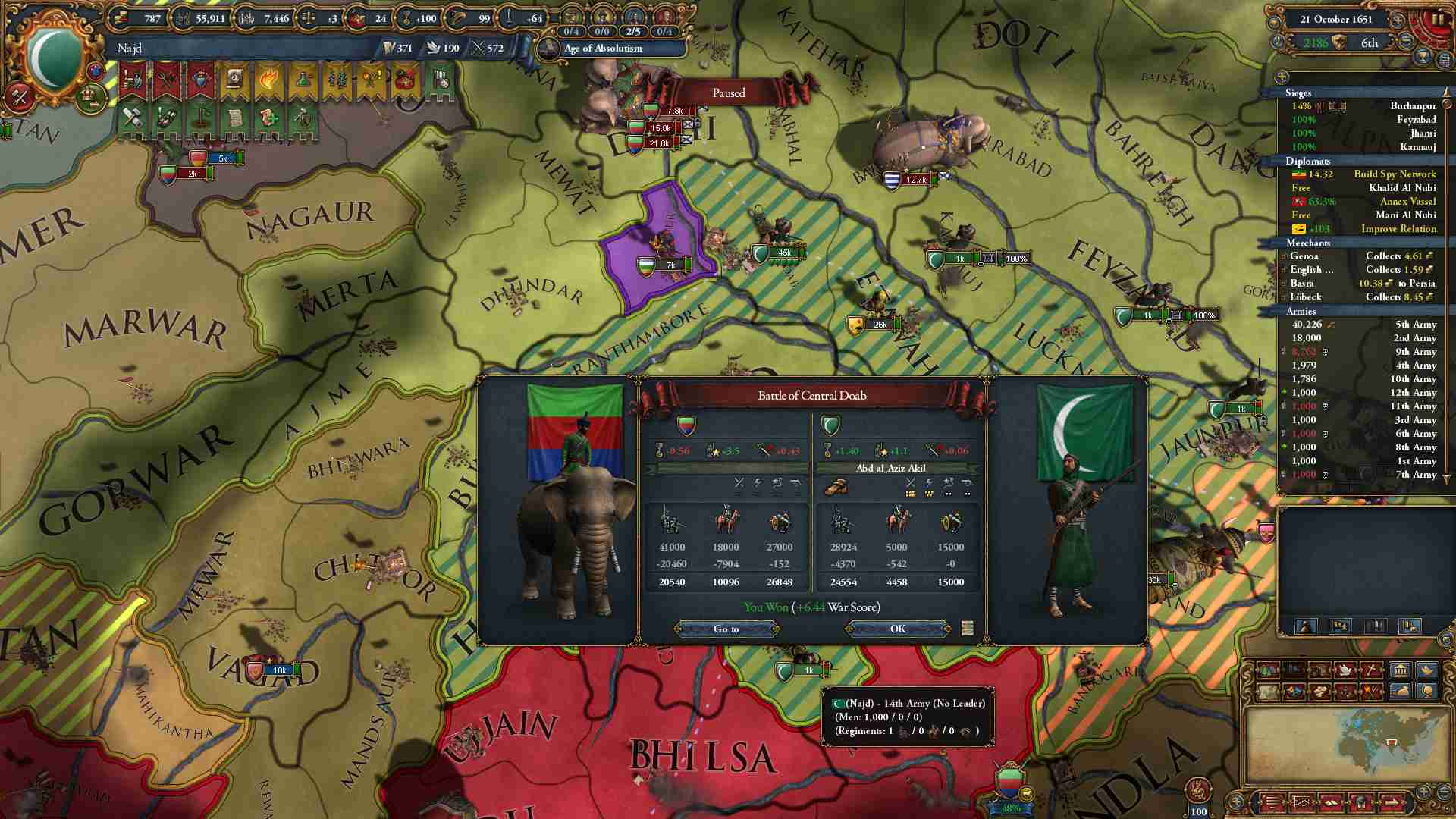 | 1658/05 | 会戦勝利→追いかけて殲滅 | Spain軍38k | Najd軍51k |