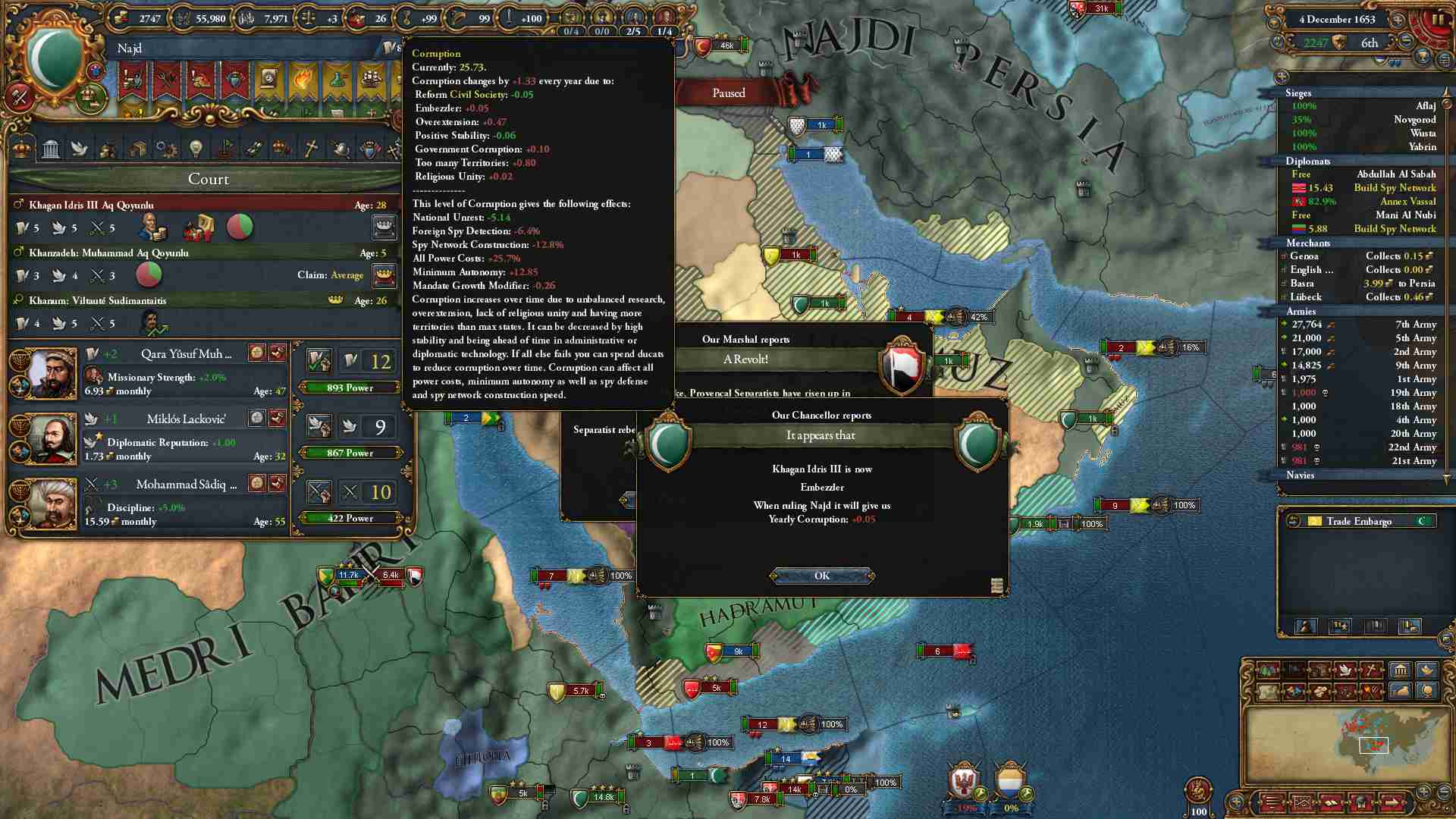 | 1653/12 | (5.5.5)族長に性格追加 | Embezzler(汚職年+0.05%) | 画像B |
