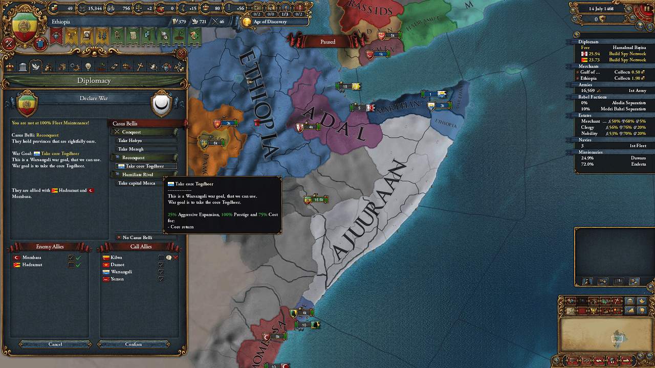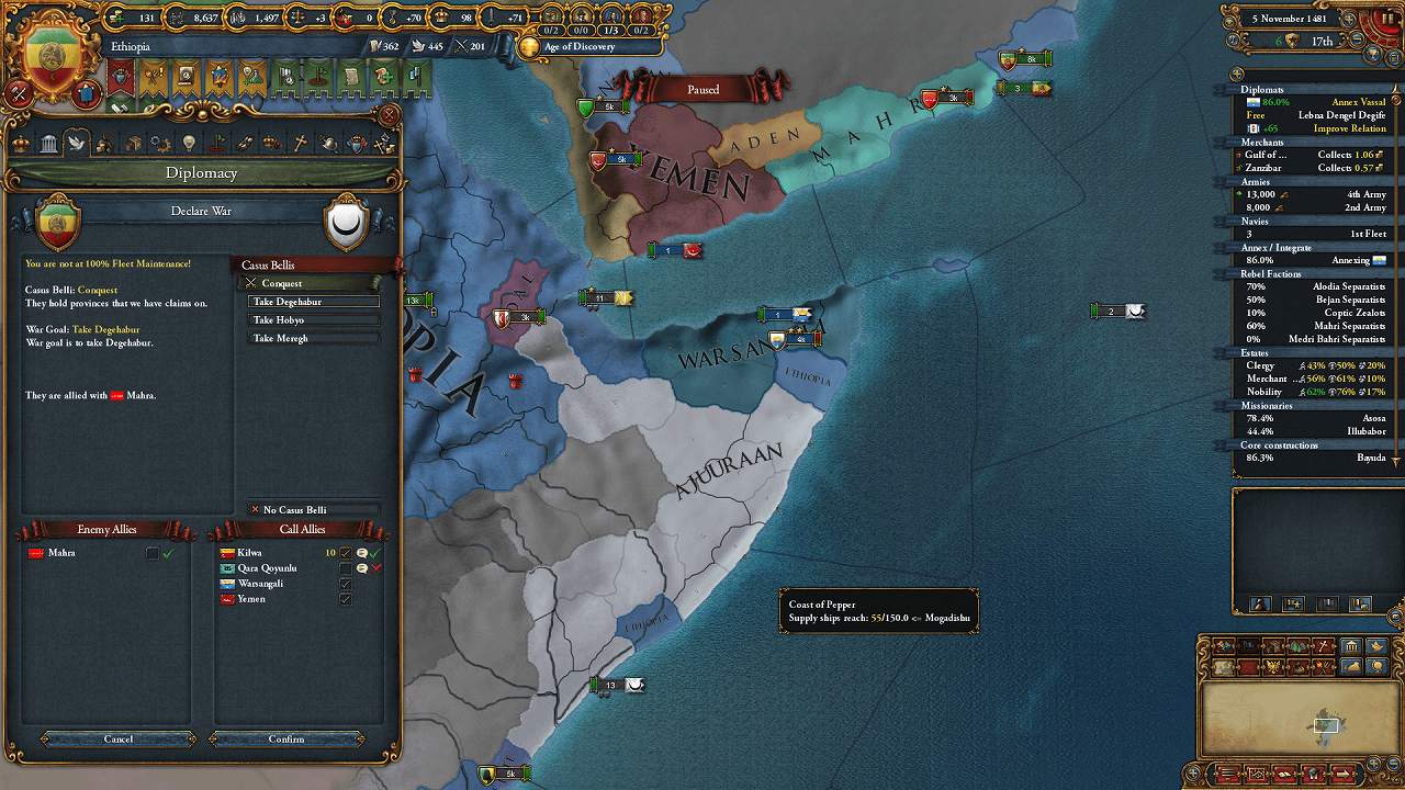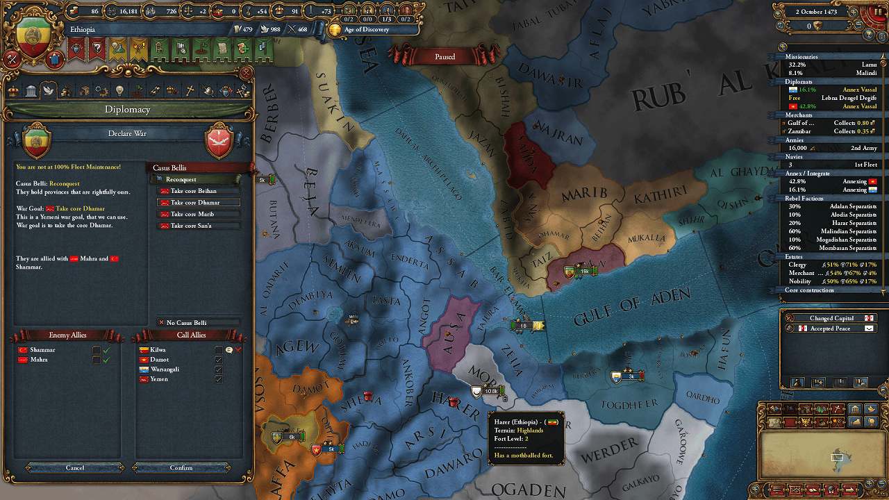 Damot併合で空いた外交枠はQara_Qoyunluとの同盟に使用