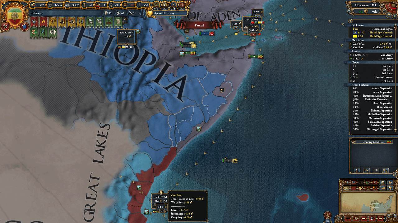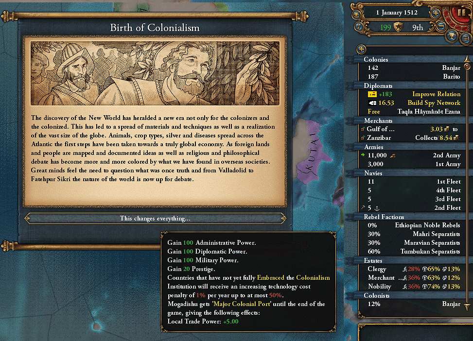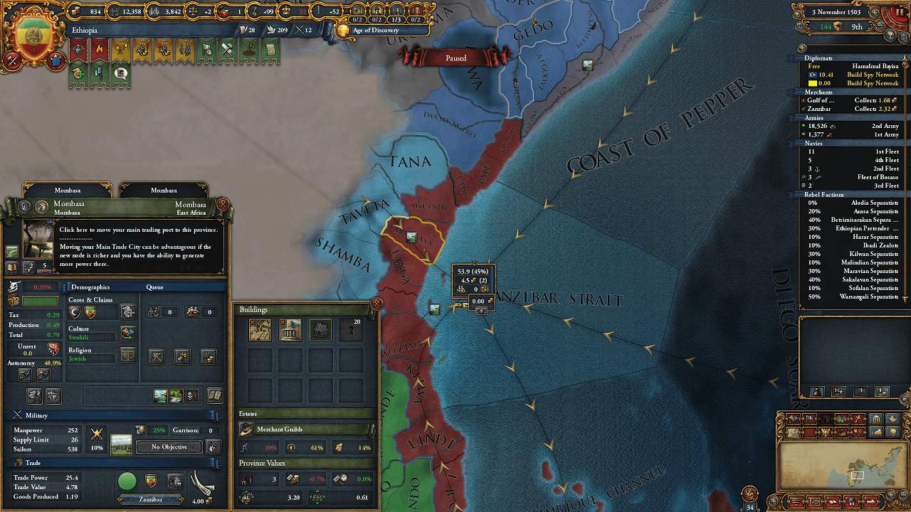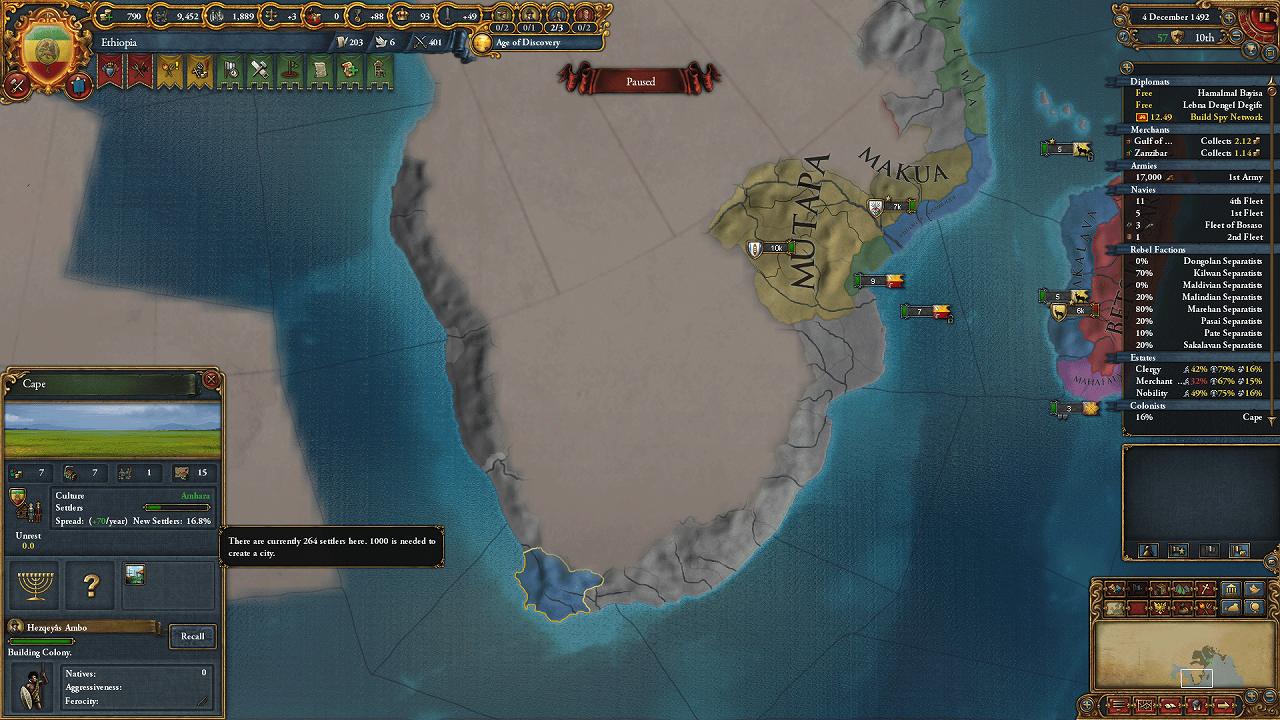 東アフリカの沿岸部は征服完了(未入植地を除く)。
