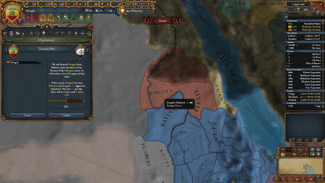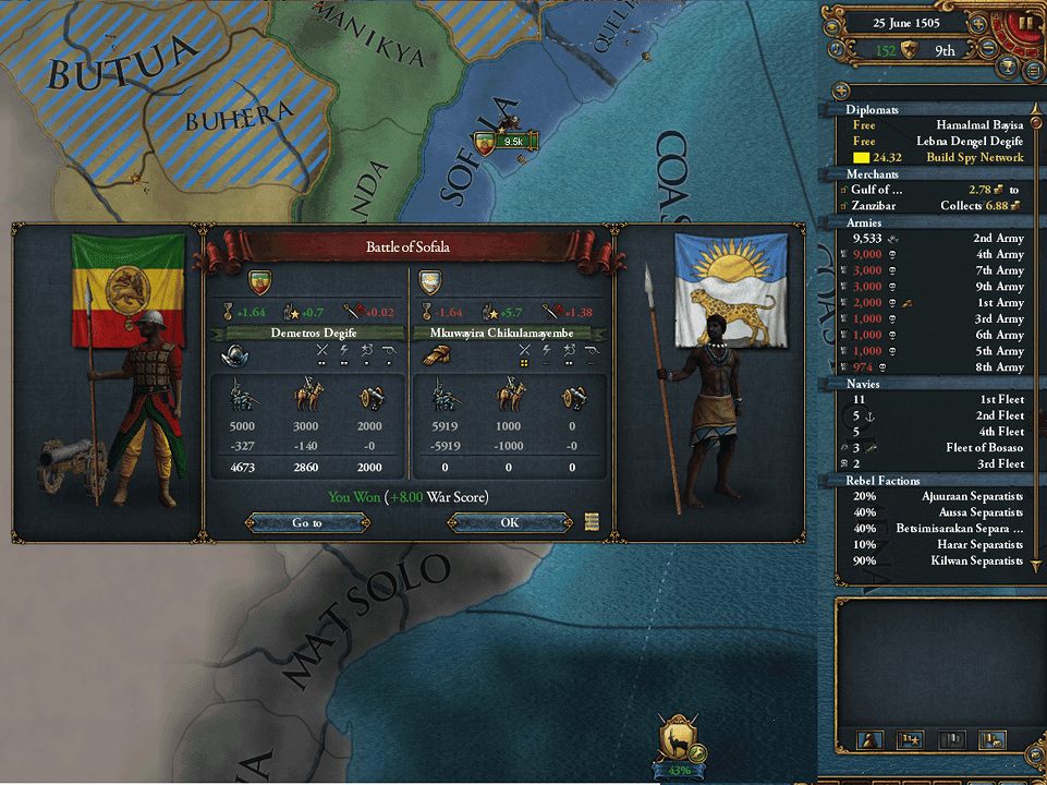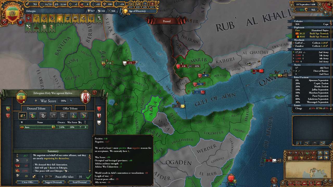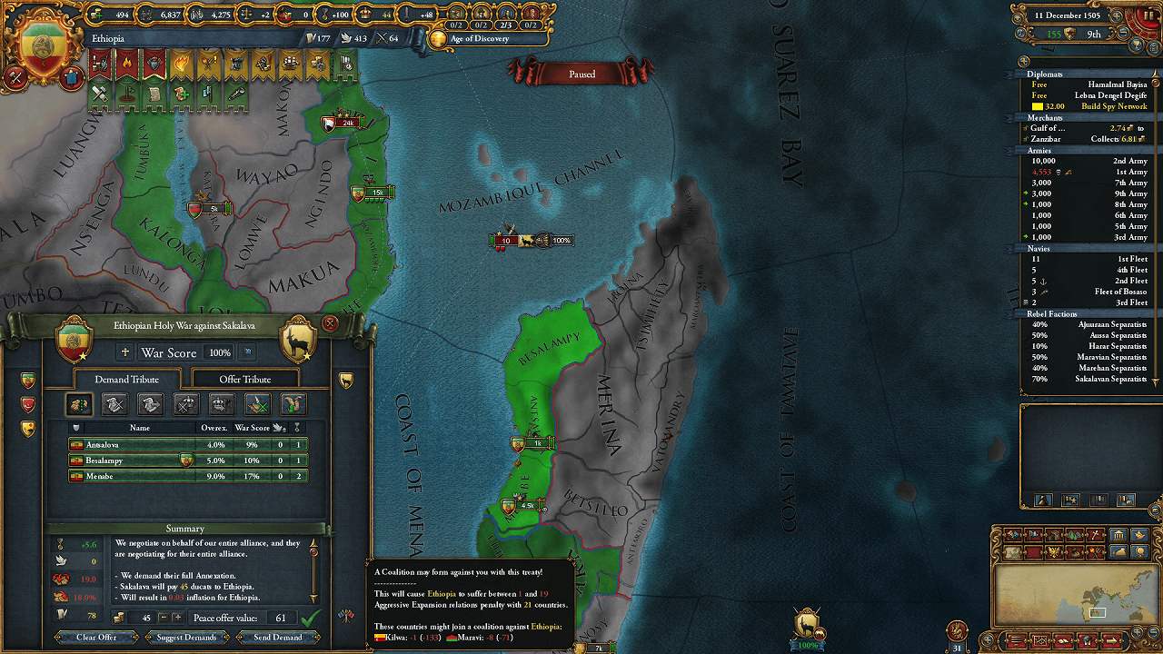 東アフリカの沿岸部は征服完了(未入植地を除く)。