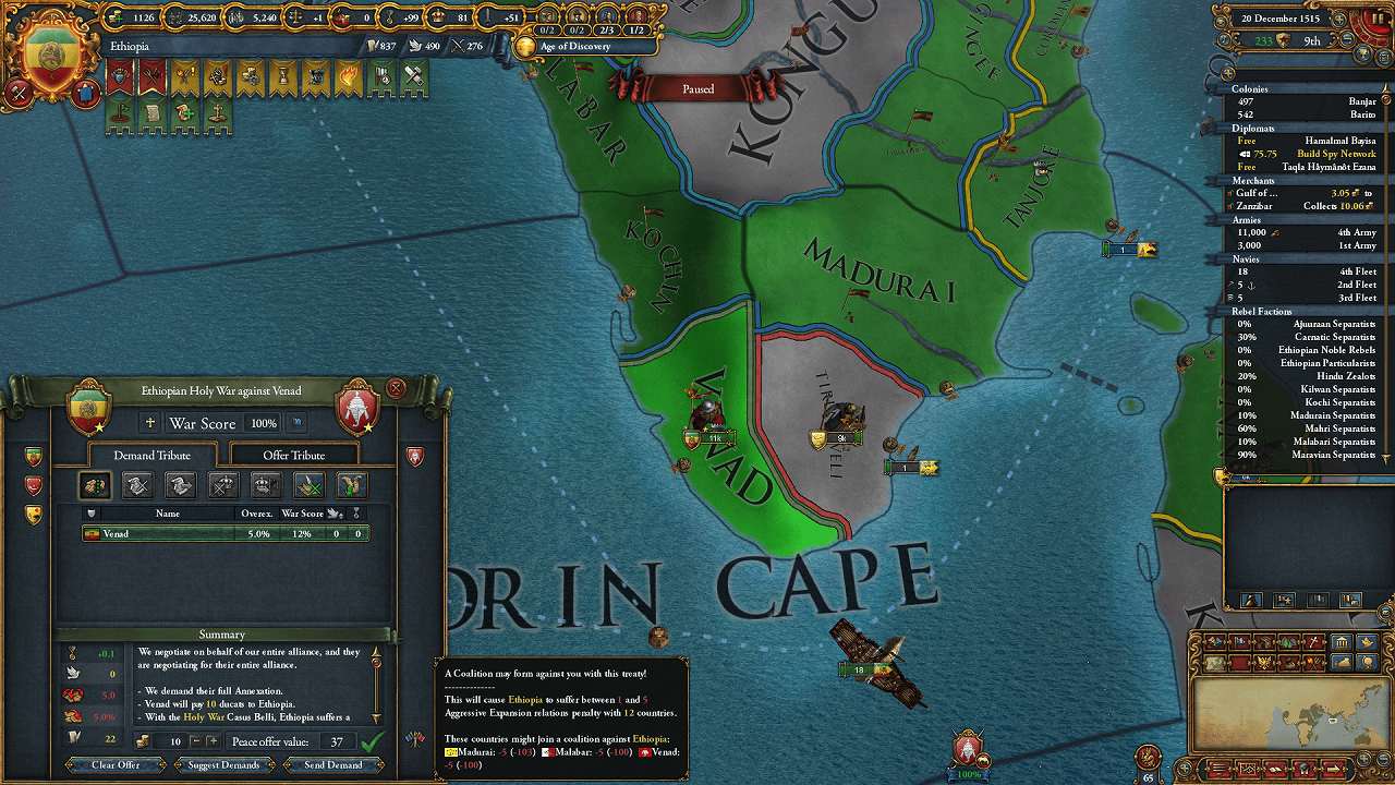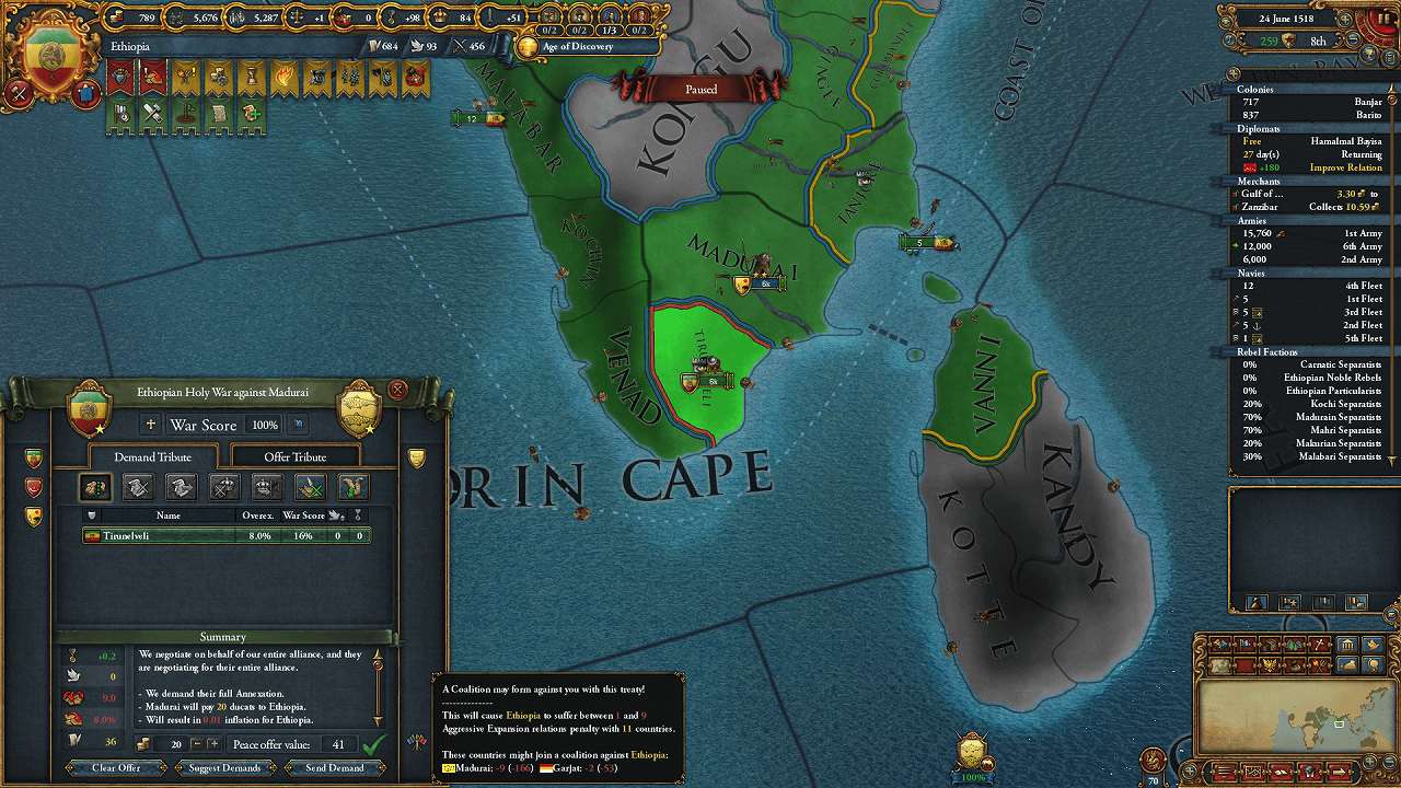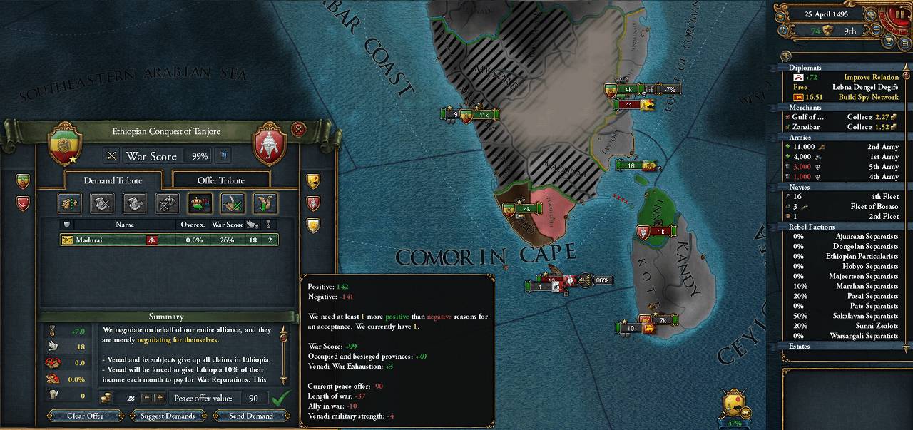 Madurai解放+同盟解除+金銭でVenadと個別講和