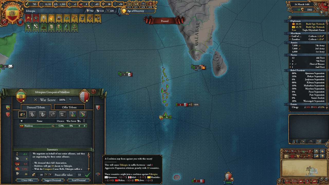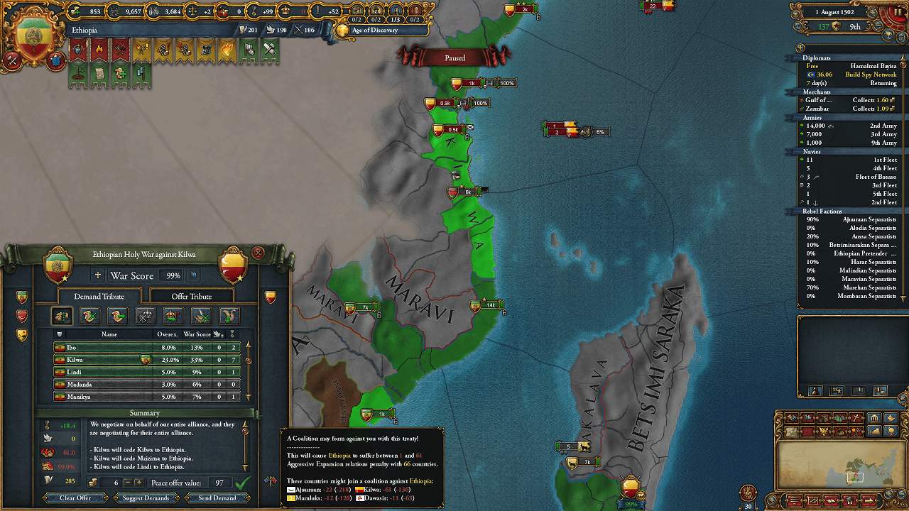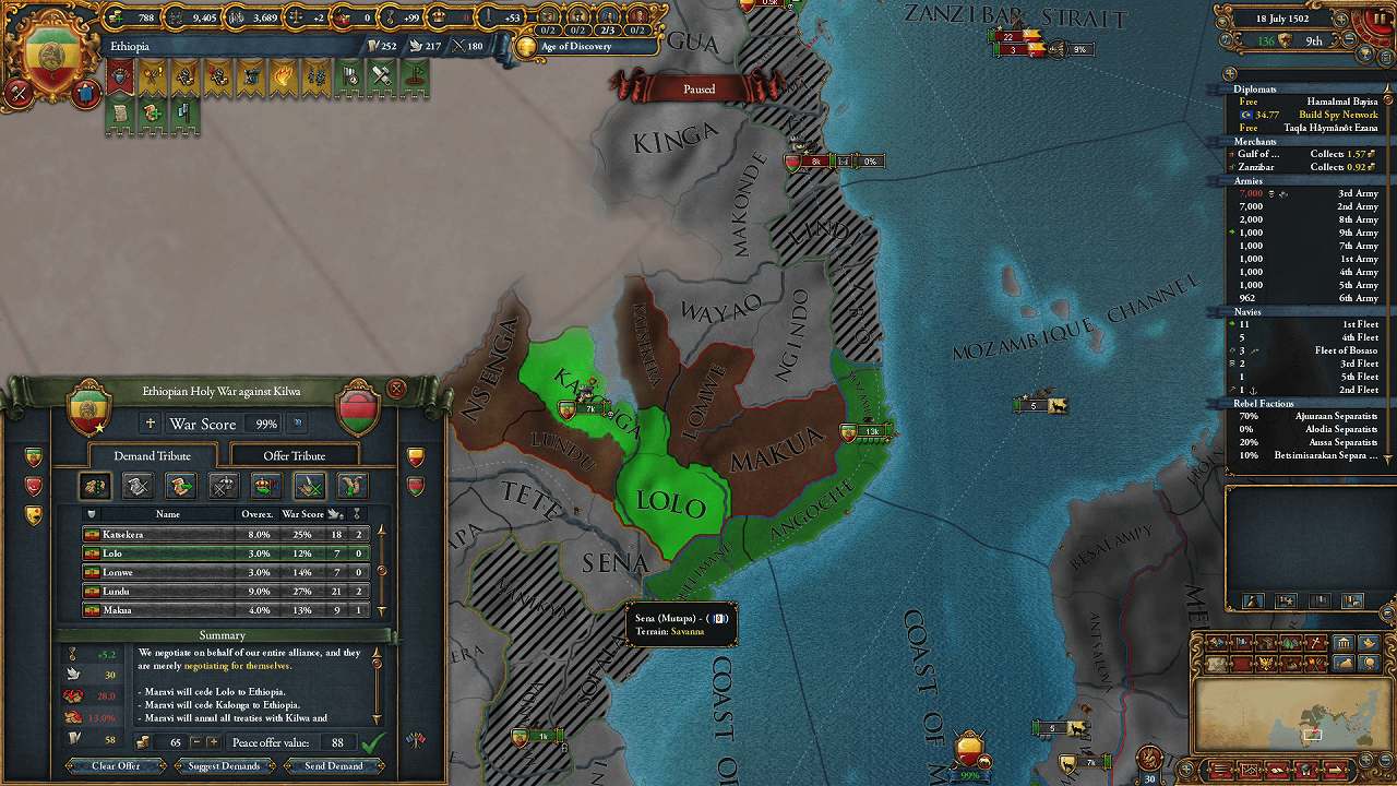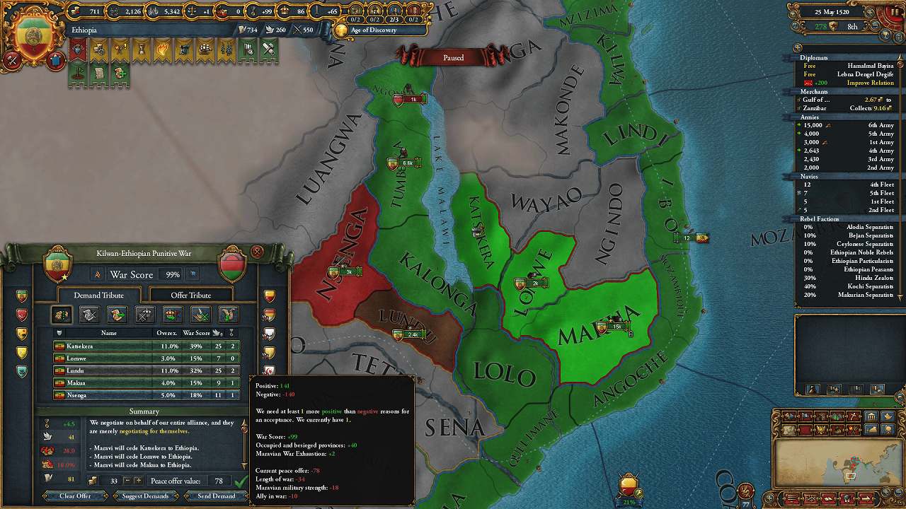 包囲網とは別枠で、Kilwaの同盟として参加してきたMaraviと個別講和