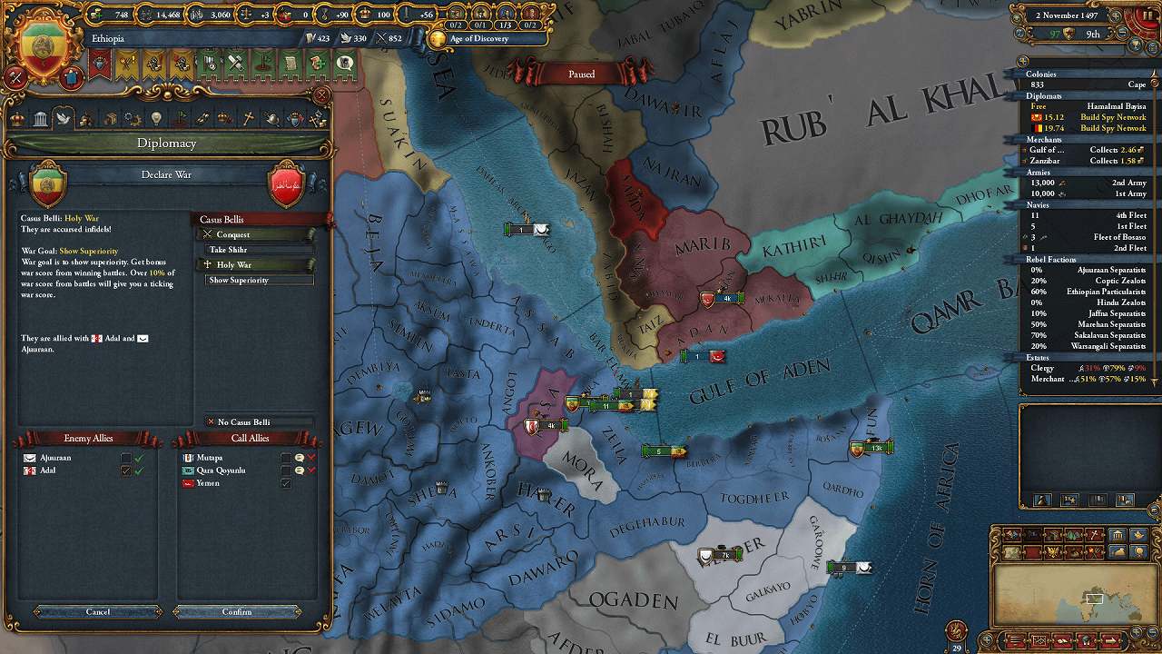 BahmanisがMalabar・Andhraと戦争に突入したのでこちらも開戦