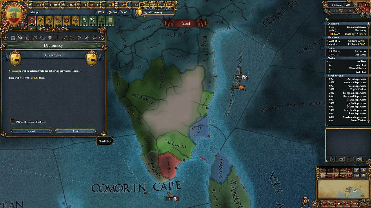 狙い通りVijayanagarが滅亡していたので属国作成