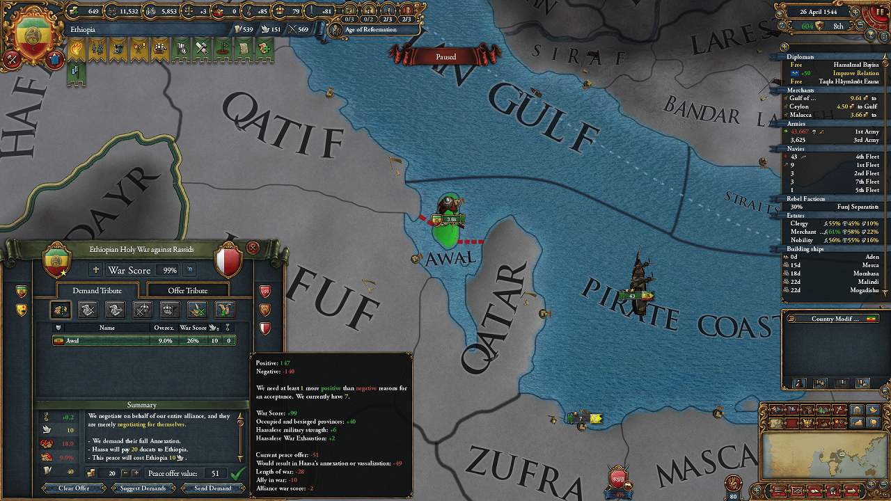 仕方なくRassidsに宣戦布告(Yemenの外交併合が完了したので聖戦CB)して釣り出す