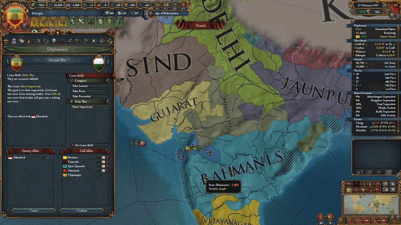 Bahmanisに属国Vijayanagarのコアを返してほしかったが、あろうことか明と同盟していた