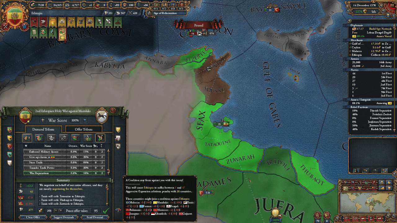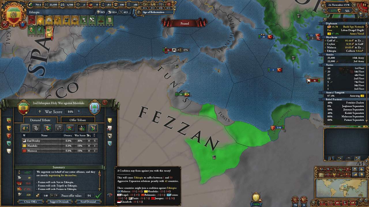 旧Fezzan・Tunis領のコア化完了を待つ間にOttomansが個別講和していた。