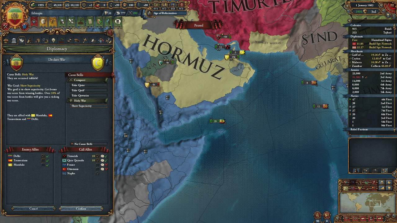 同盟:Timurids、France、Brandenburg