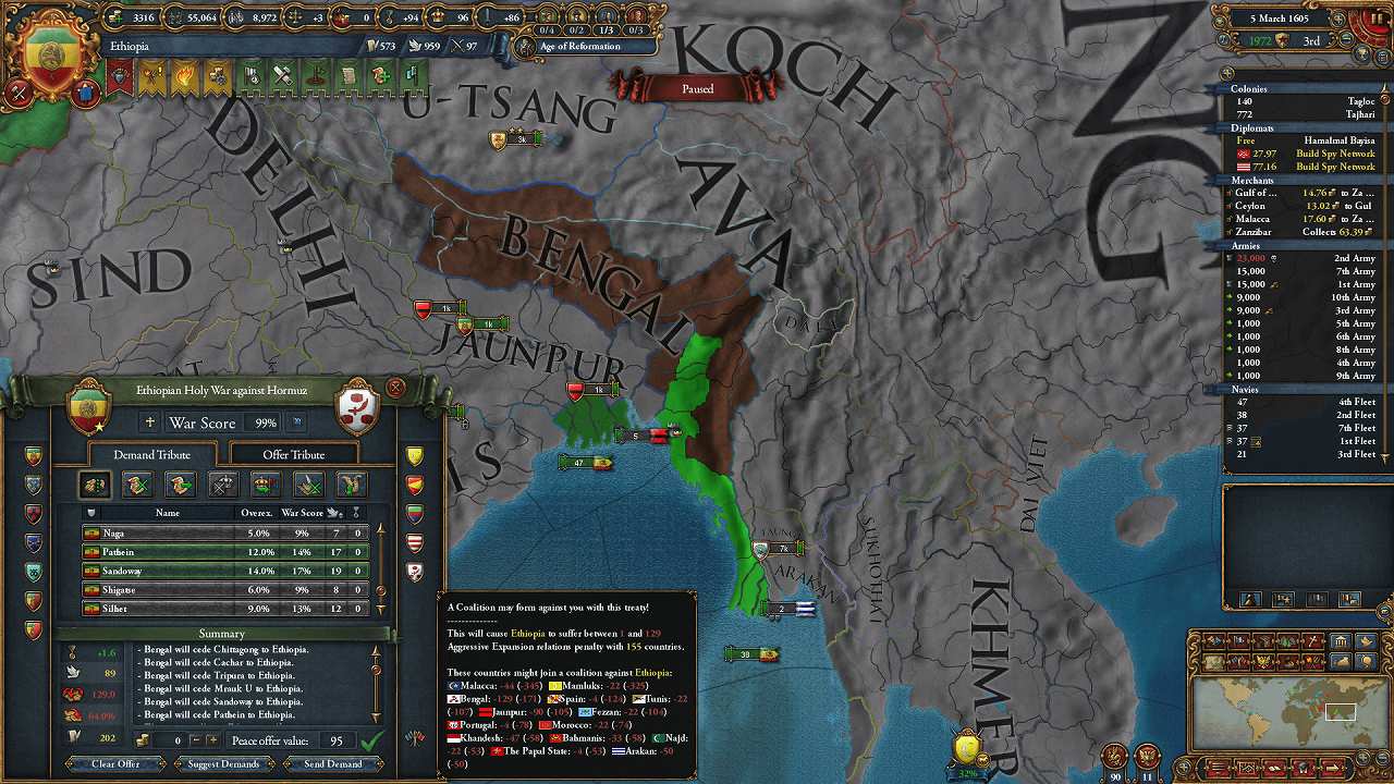 Bengal個別講和。沿岸部を押さえたが、後から考えると内陸深くに進んでおくべきだった