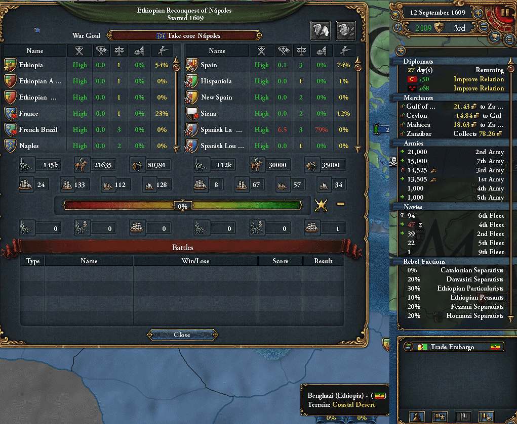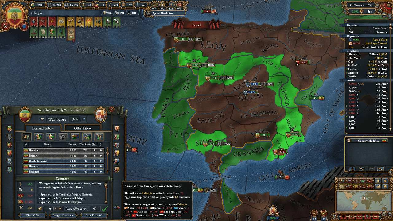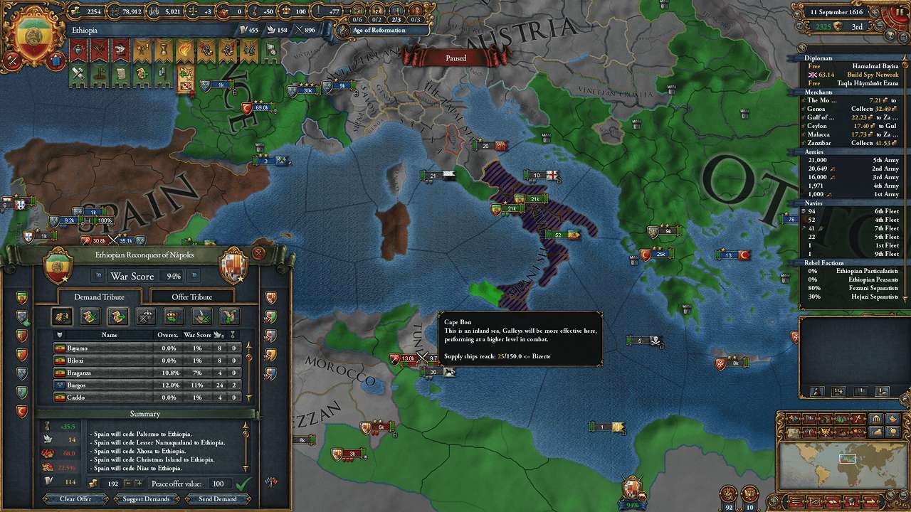 SpainがCAPEの隣に入植してくれたので、聖戦CBが使用可能に