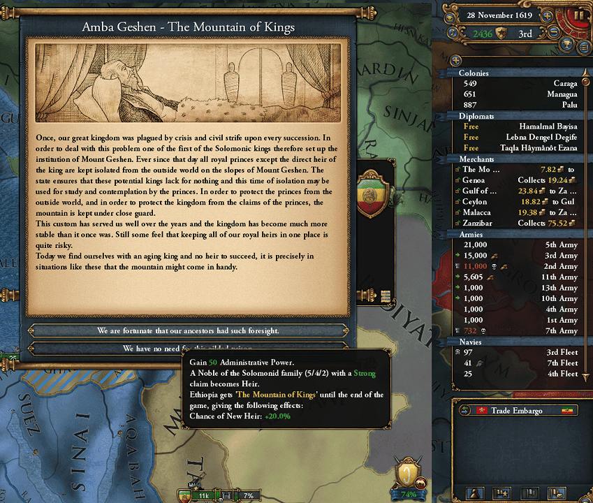 戦中に"Global Trade"受容→受容ボーナス+「インド貿易会社の設立」Dicisionで商人+2