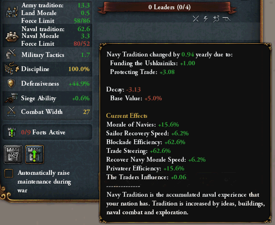 これは海軍伝統を増やす事が目的なので、海軍維持費は常に100%で固定します。