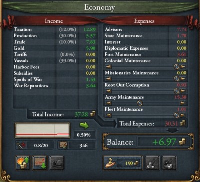 今まで使い果たしたことのなかった人的資源が底をついてしまう。なんとか、諸侯の解放は達成したものの、4年後に控えたオランダ戦には間に合わないかもしれない。もう数年余分に休憩を取る必要があるかも。