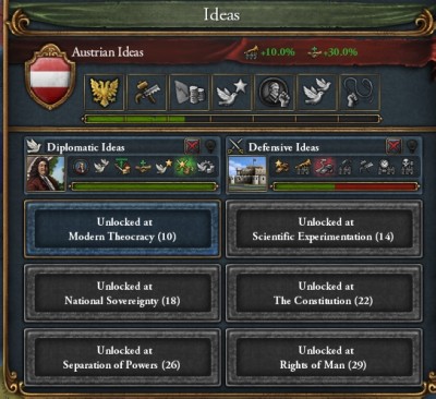 「ハンガリーを併合したあたりから外交ポイントがきつくてさ、統治と軍事技術がLv14なのに、外交だけ12なんだ。アイデアまで取ってる余裕なさそうだよ」