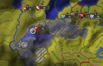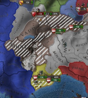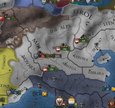 「戦争中に、マントヴァがミラノを併合した。属国化でのAE増加は増えるけど、まぁ、これはこれで」
