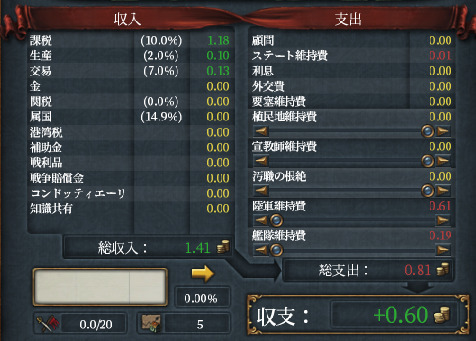 というわけで2-1-1と奮発して顧問を雇ってもまだ黒字というわけです。ルネサンス需要のためにもまだ開発を続けますので、さらなる収入を期待できますね。