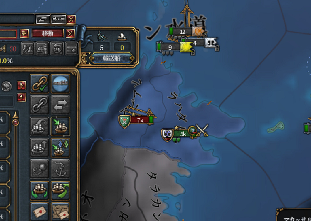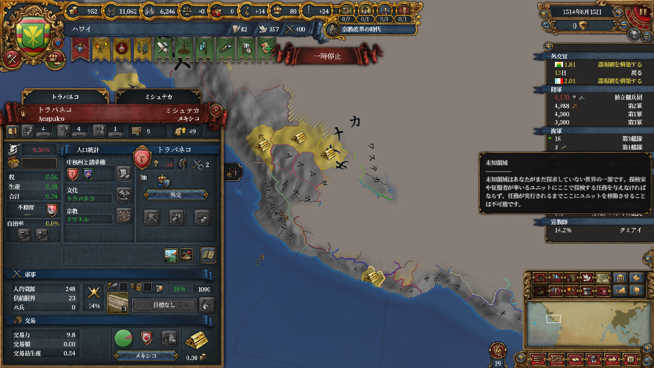 1ハワイをNOCBで襲い、そこを起点に北ポリネシアエリア4州を制圧します。注意:コア化距離制限。