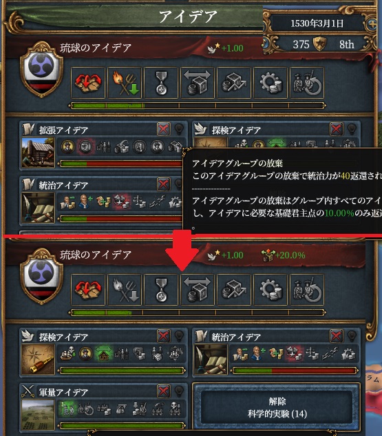 またモルッカ攻略中にアイデアの変更(拡張 → 軍量)を行いました