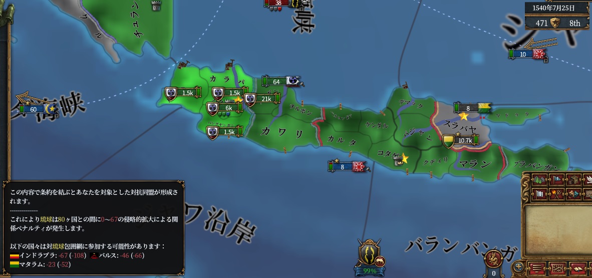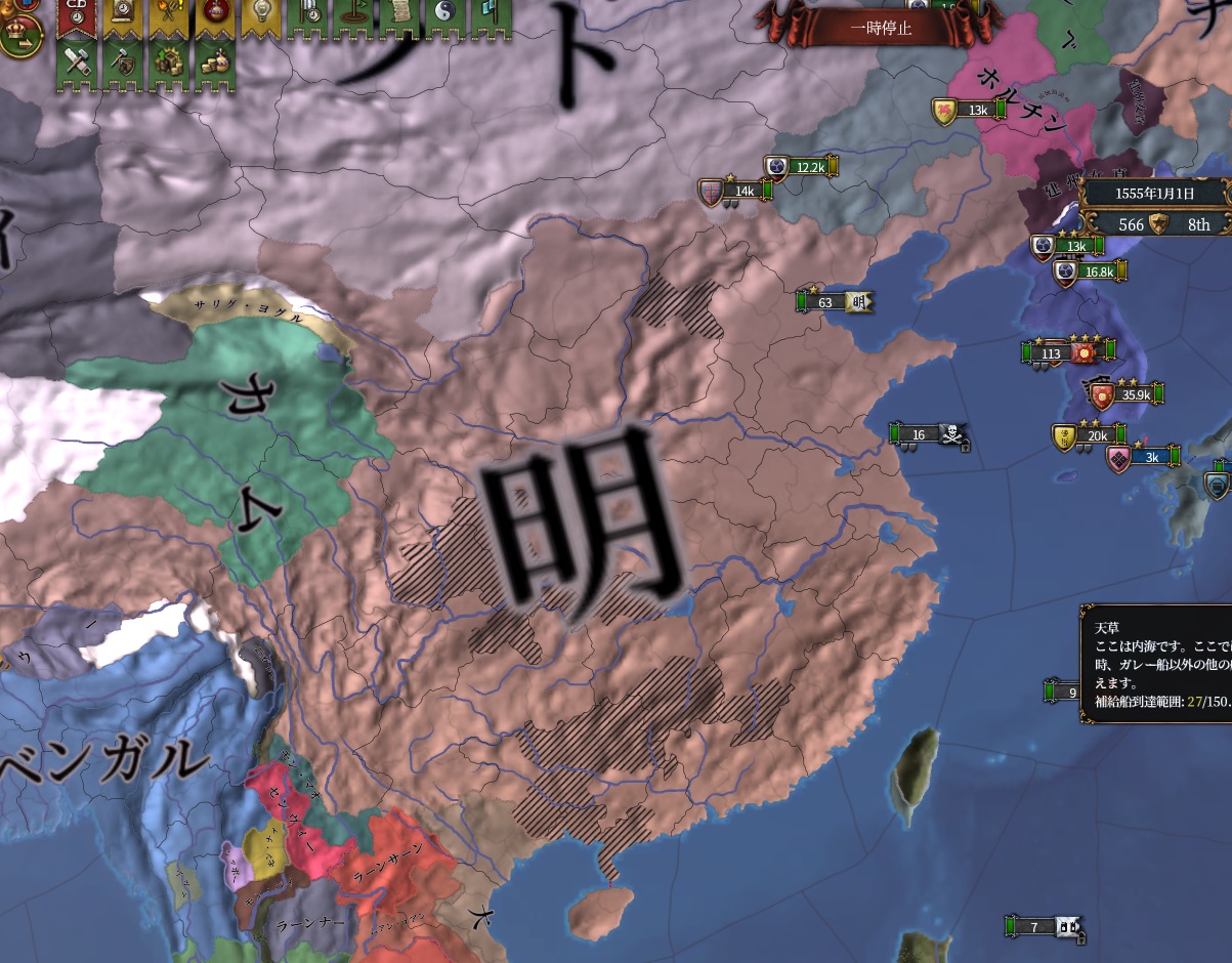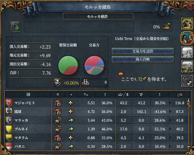 しかしながら吸われてるのは同盟国(朝鮮・マラッカ・ブルネイ)と植民系属国マジャパヒトなのでどうこうできないです。