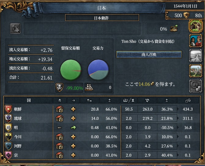 ・幕府であり、最悪大名に土地を投げれば交易力は手に入る