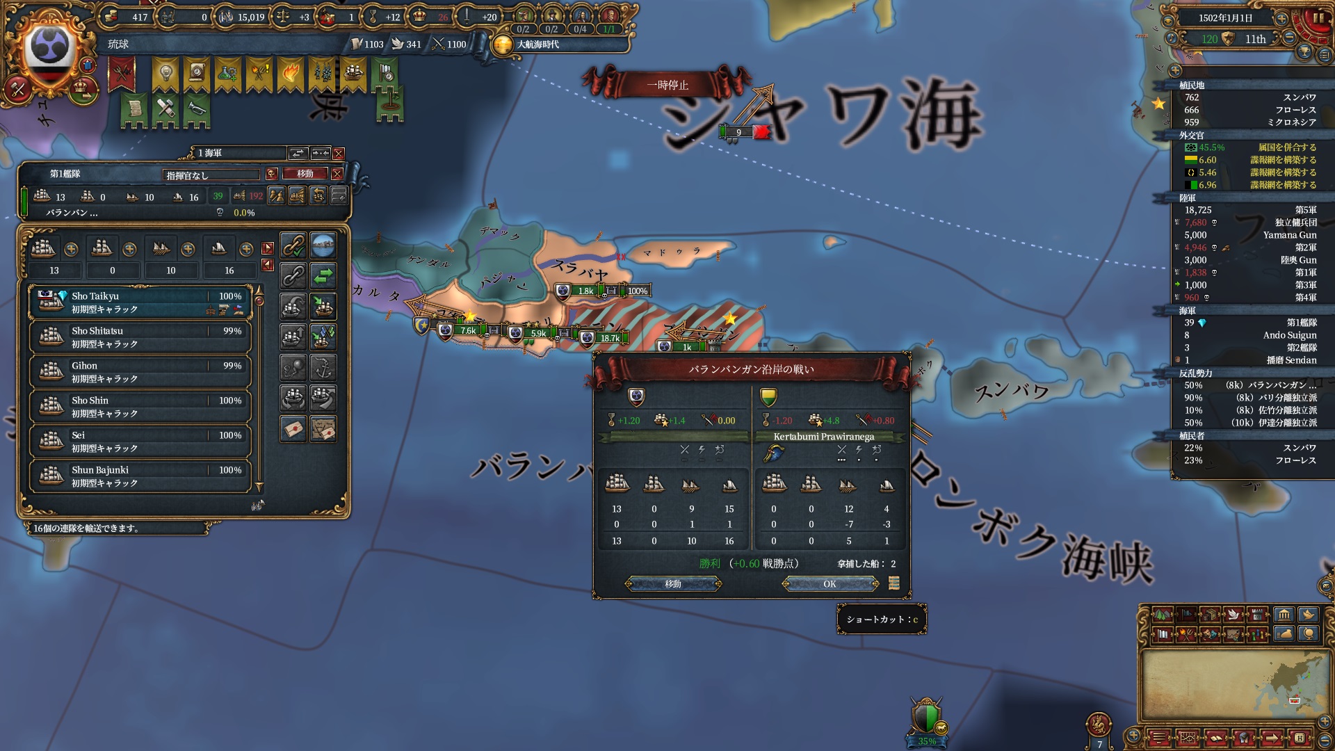 スンダを滅ぼし、モルッカノードのシェアを確保しました。
