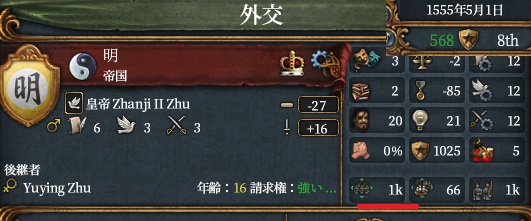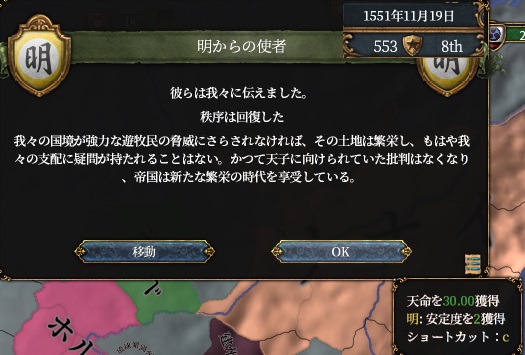 つまり国境の遊牧民発動中は絶対に発生せず、明は生存が保証されます。ただ国境の遊牧民が解除されると明がぶっ壊れます。この状況を後で活用するので覚えておいてください。