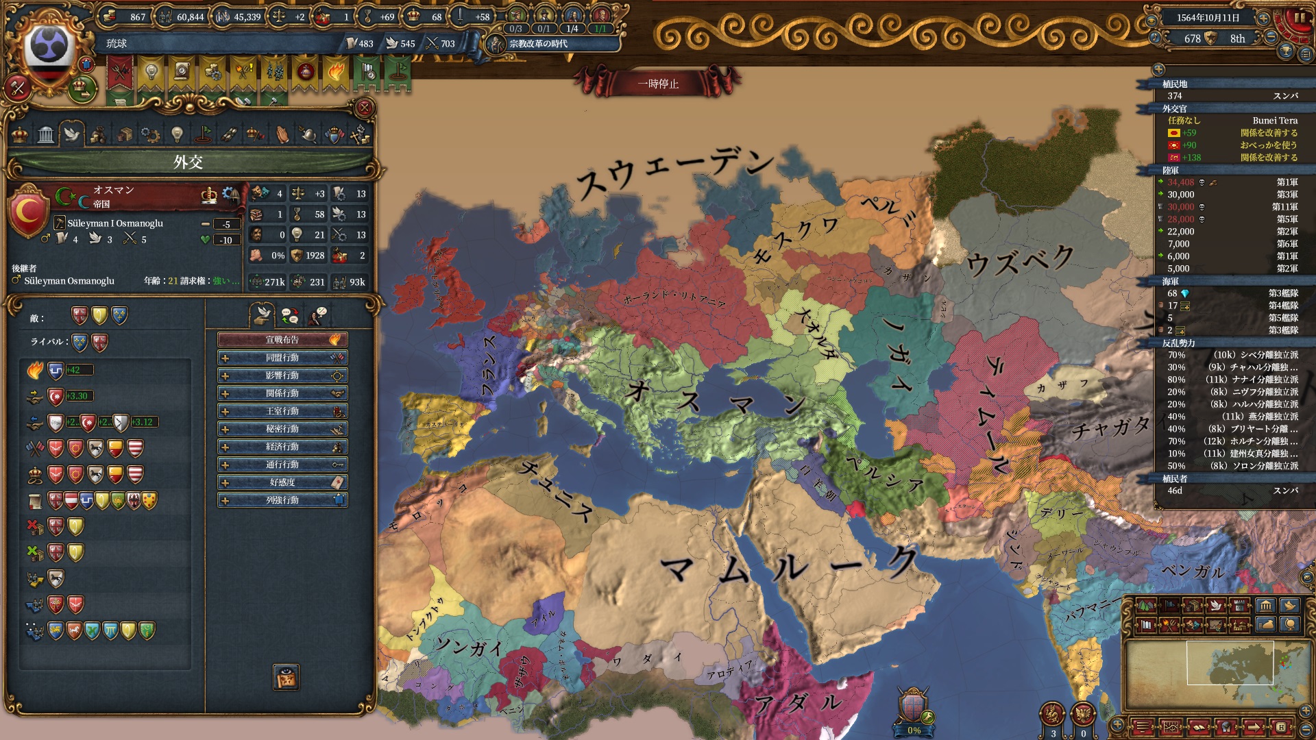 オスマンとマムルークが共存している世界ですか、だからなのかオスマンは200k代の後半と軍量が少なめ
