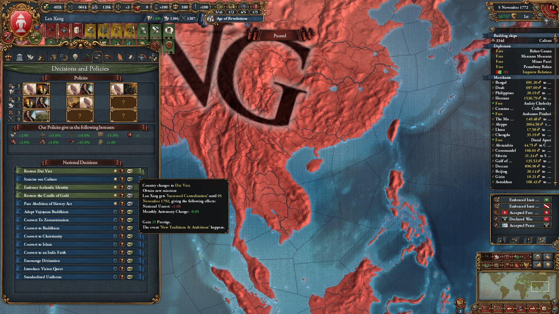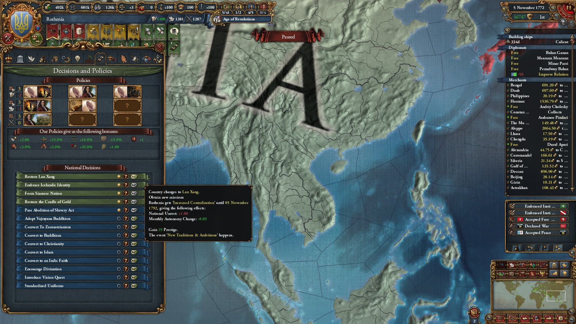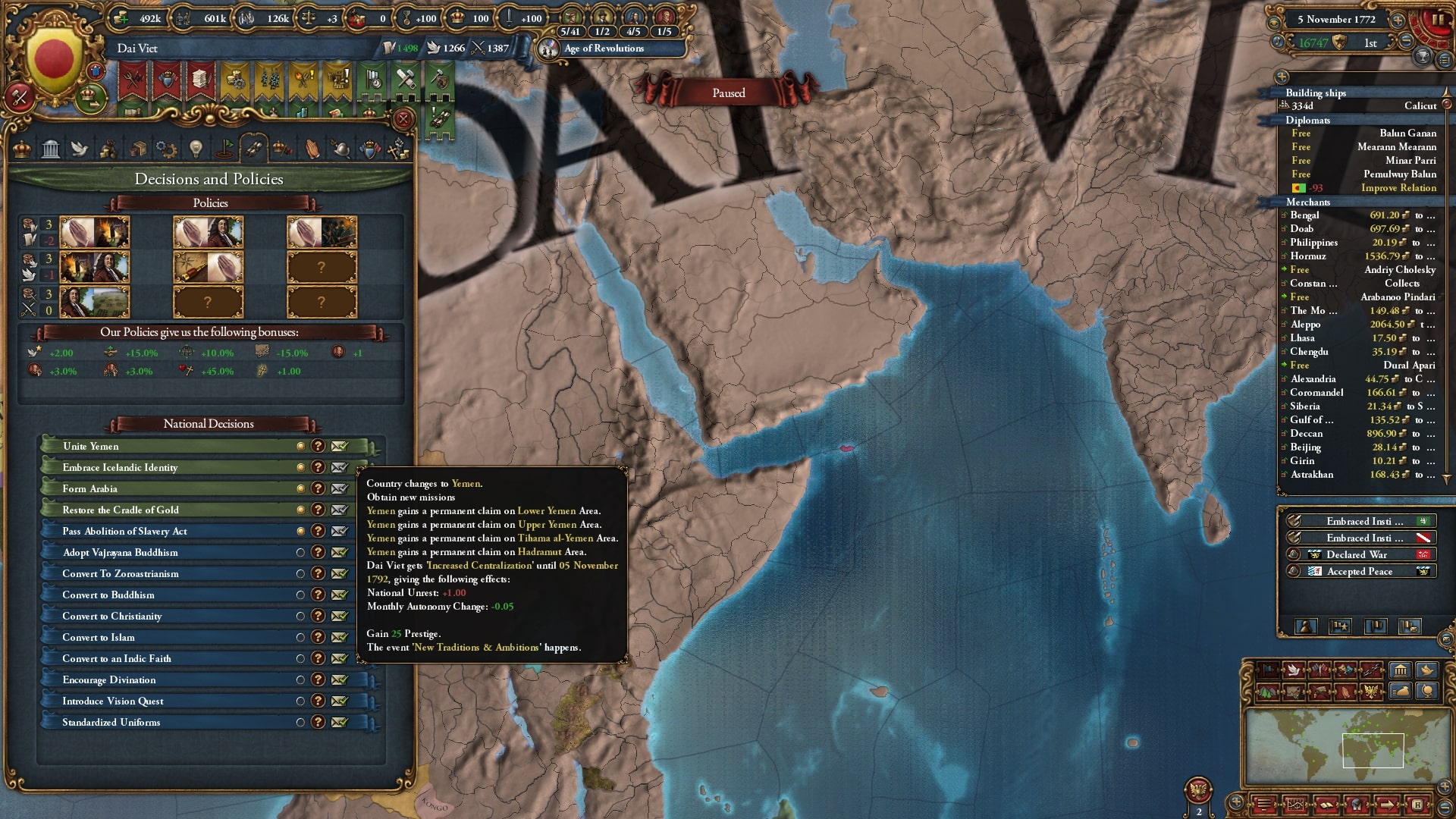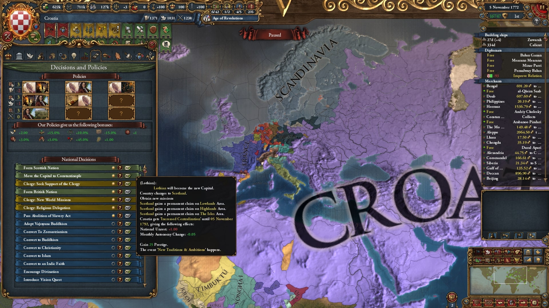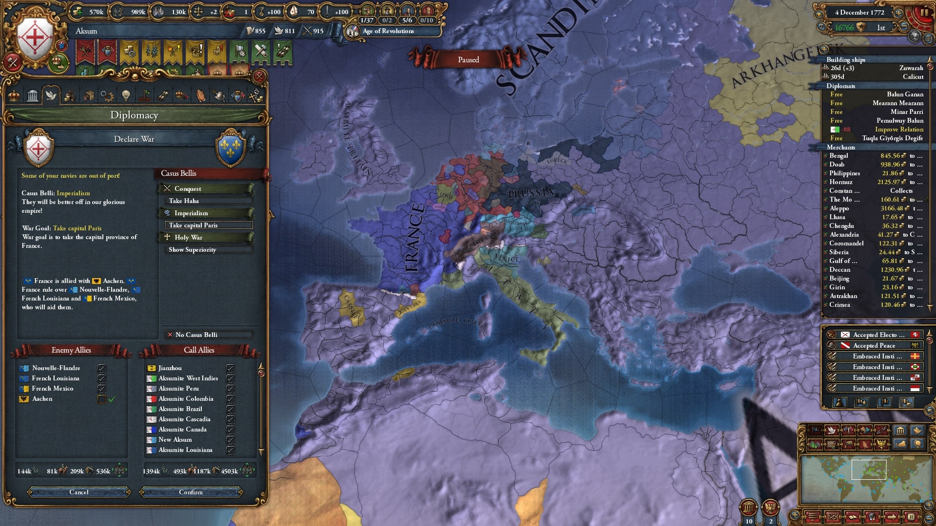 開発度も収入も陸軍も植民地国家も十分にそろっています、まあ1772年ですから当然なのですが。