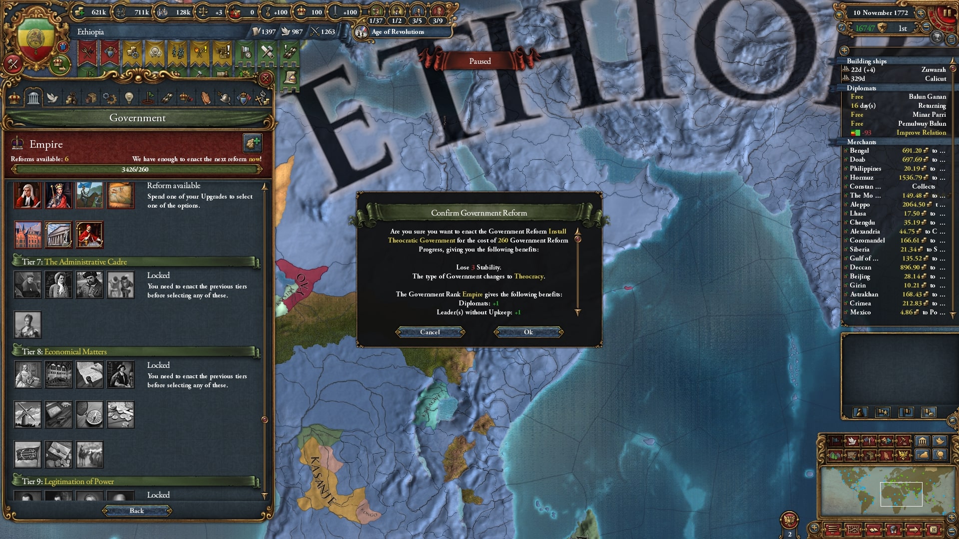 政府改革進捗度は、そもそも先住民アイデアの月間政府改革進捗補正/Monthly Reform Progress Modifier*8 によって初めから十分にありました。
