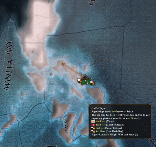 少し飛んで、1534年。フィリピンへの植民も終わり、そろそろ手頃な植民地がなくなってきたMalayaは、Berqueに優秀な航海士を載せ、新たな土地を求め大海原へと旅立たせます。