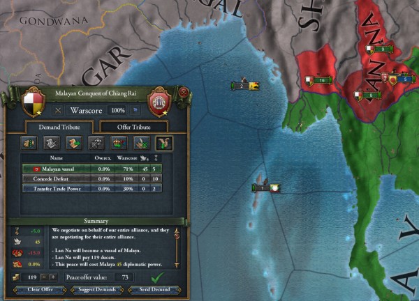まぁ、台帳によるとこの時点でのMalayaの陸軍は第2位で、Lan XangとShanを合わせても及びません。さらにMalayaは3つの属国を持ちます。