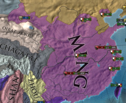 Oirat HordeがMingと戦争をしており、Xiのコアが奪われないか心配になり少し焦り無理やり宣戦しました。