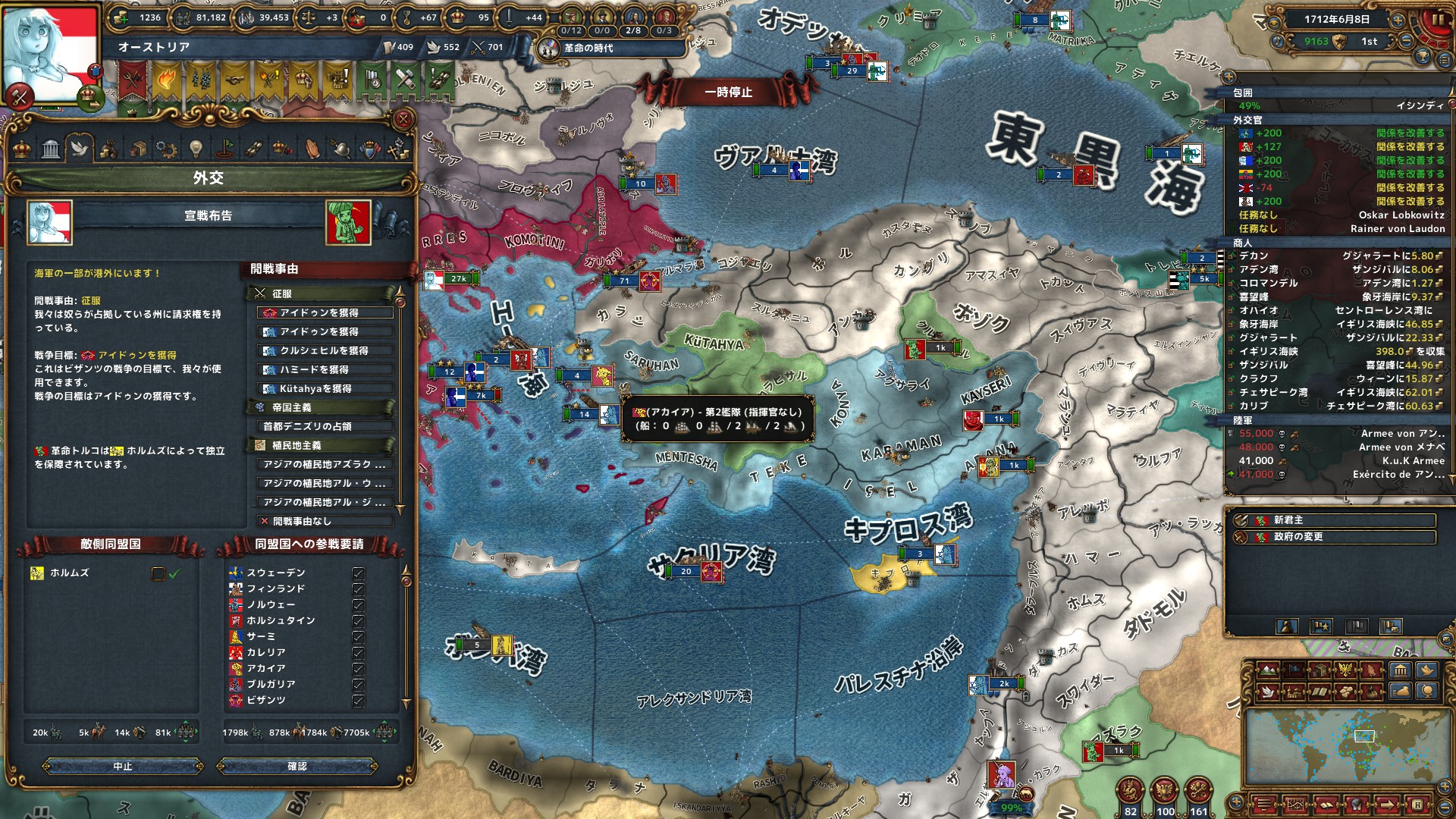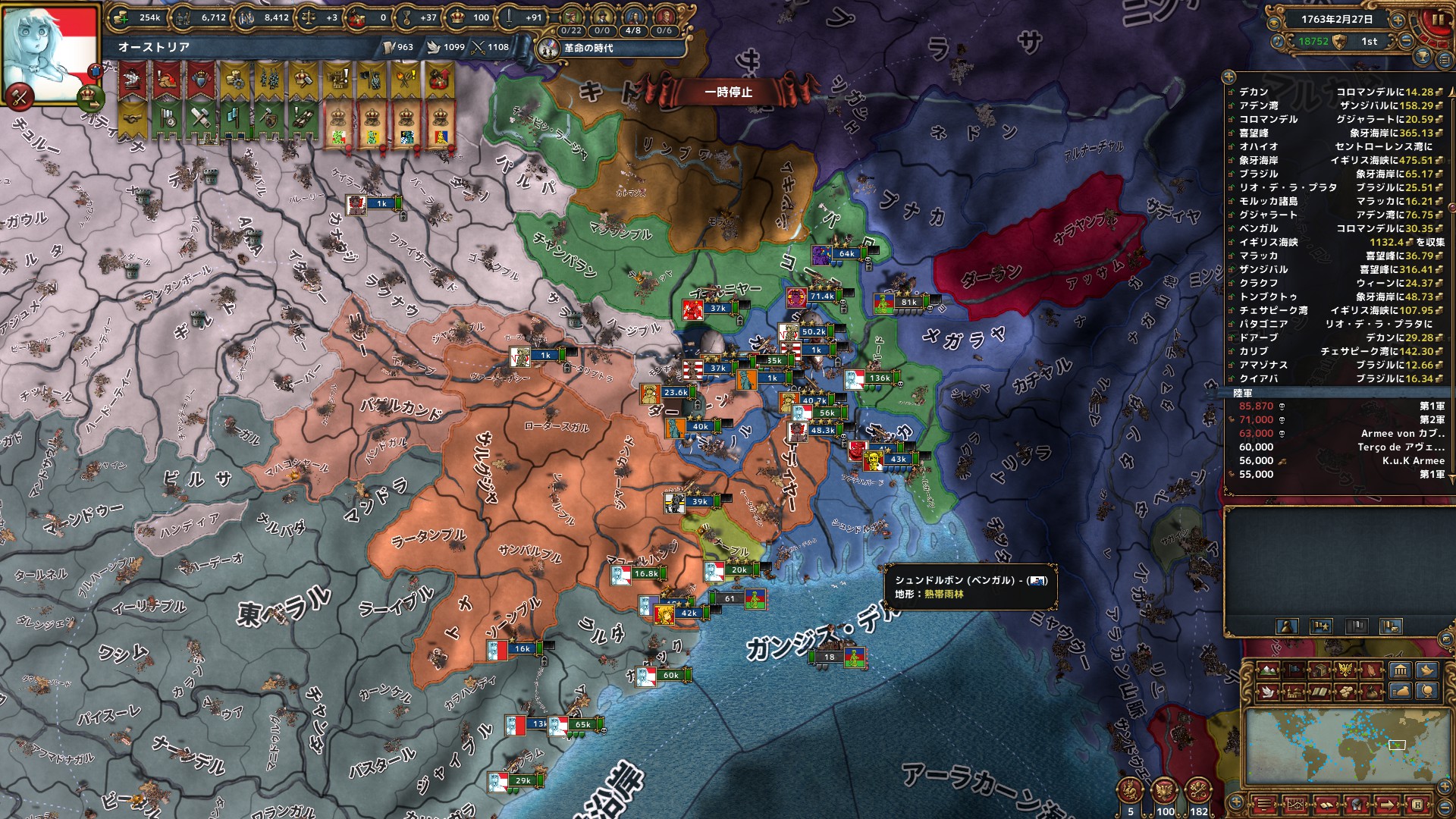 この2つの目標を達成するやり方は色々ありますが今回最終的には植民地から巻き上げてますHRE諸侯いらねえなあ