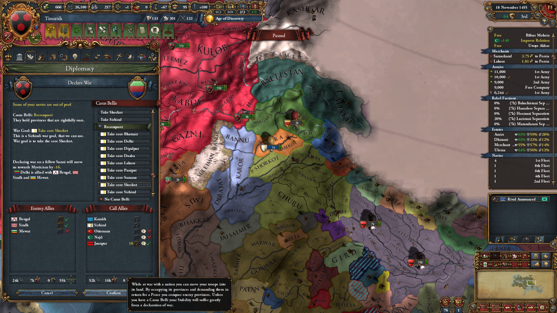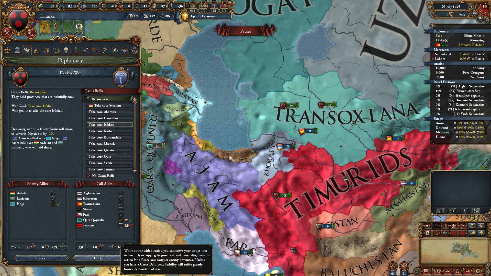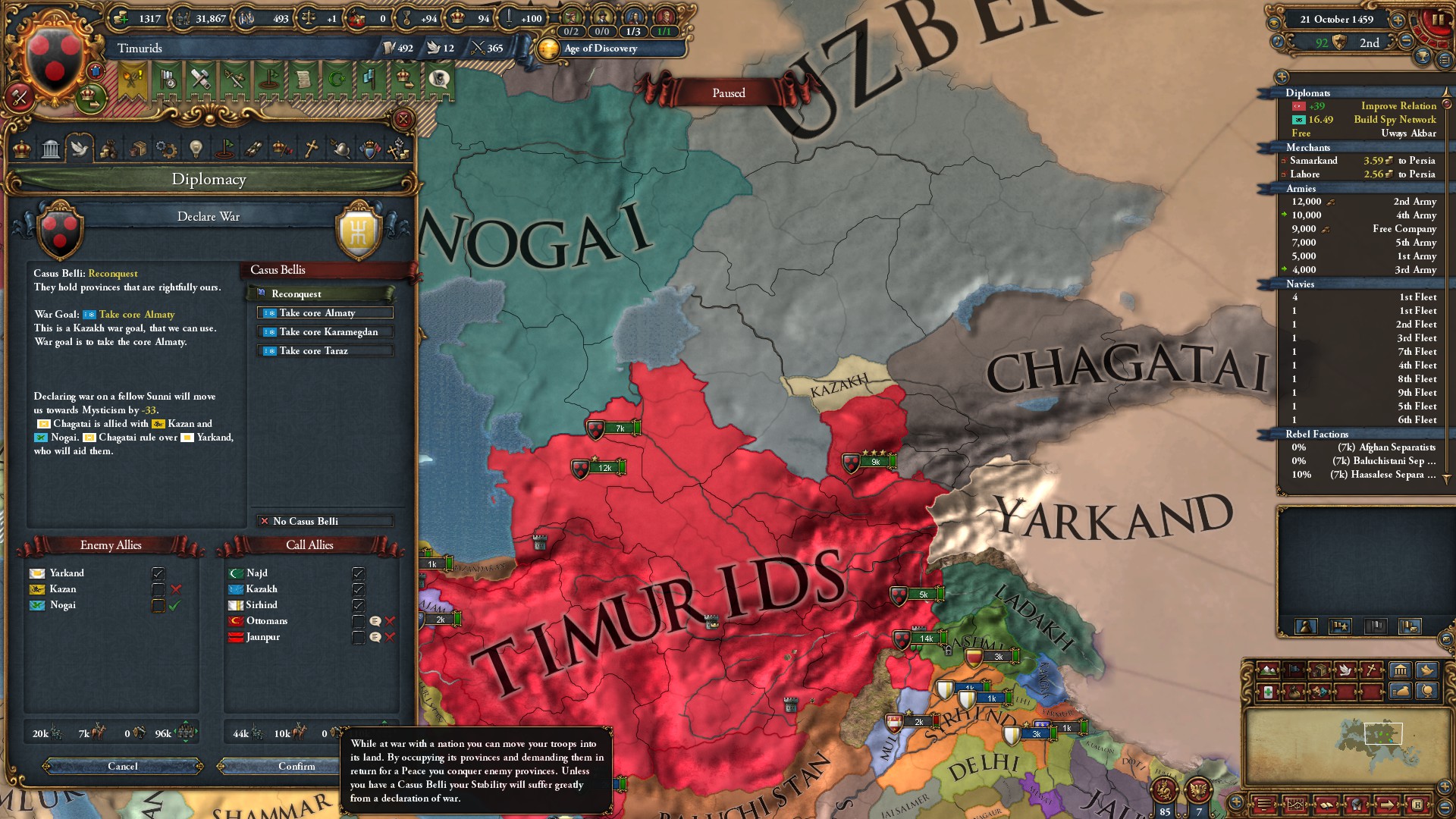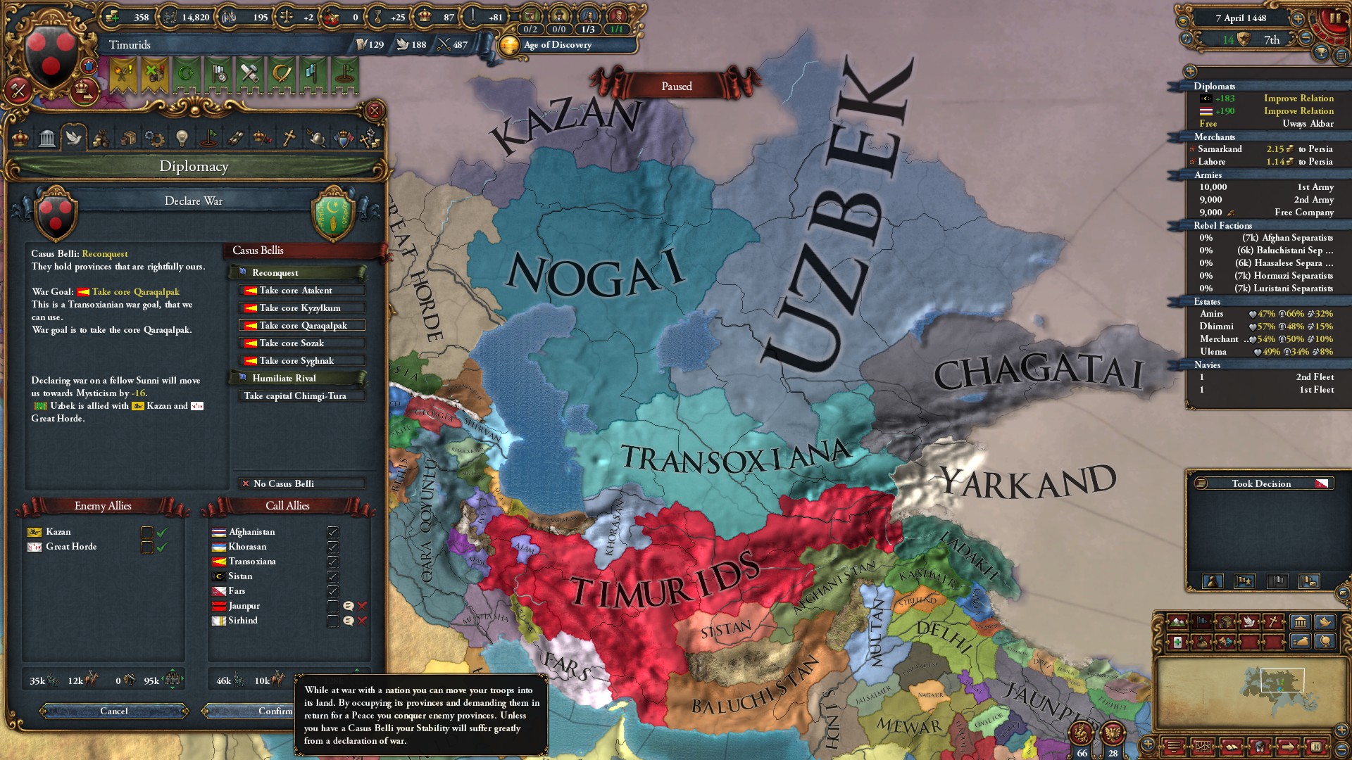 続いて、ライバルのウズベクをトランスオクシアの再征服CBで攻めます。