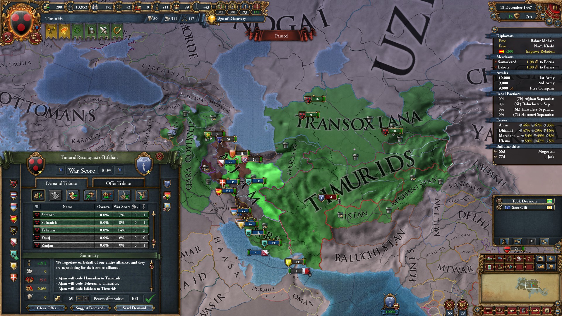 黒羊朝との同盟ができ次第、土地約束でアジャム戦に呼びます。