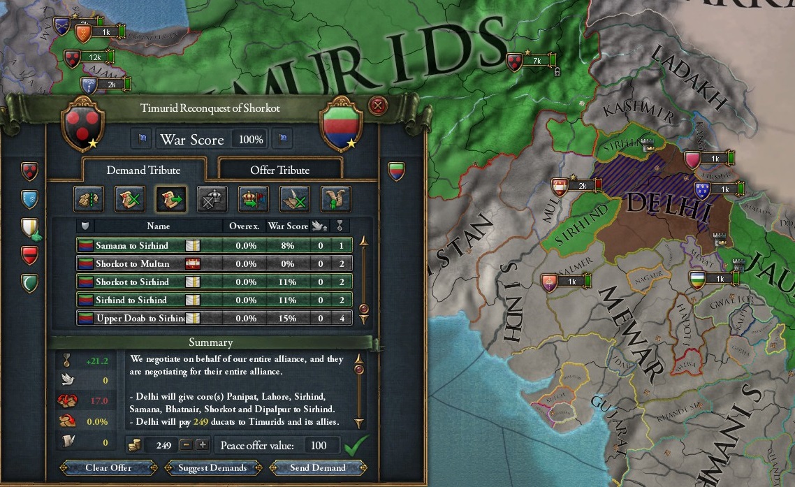戦後にシルヒンドと同盟を結びました。属国化するとLD管理が面倒なのでまだしません。