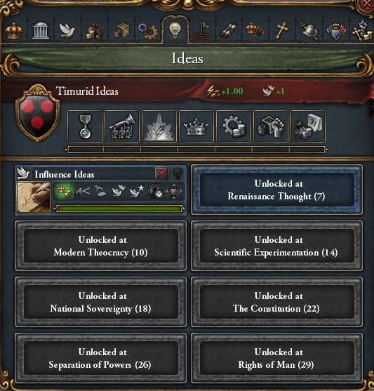 ・Supremacy over the Crown(全階級の忠誠均衡点+10%、影響+10%)