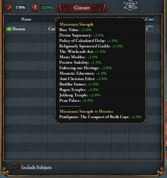 属国には毎月補助金40ダカット程渡しているので積極的に改宗してくれています。