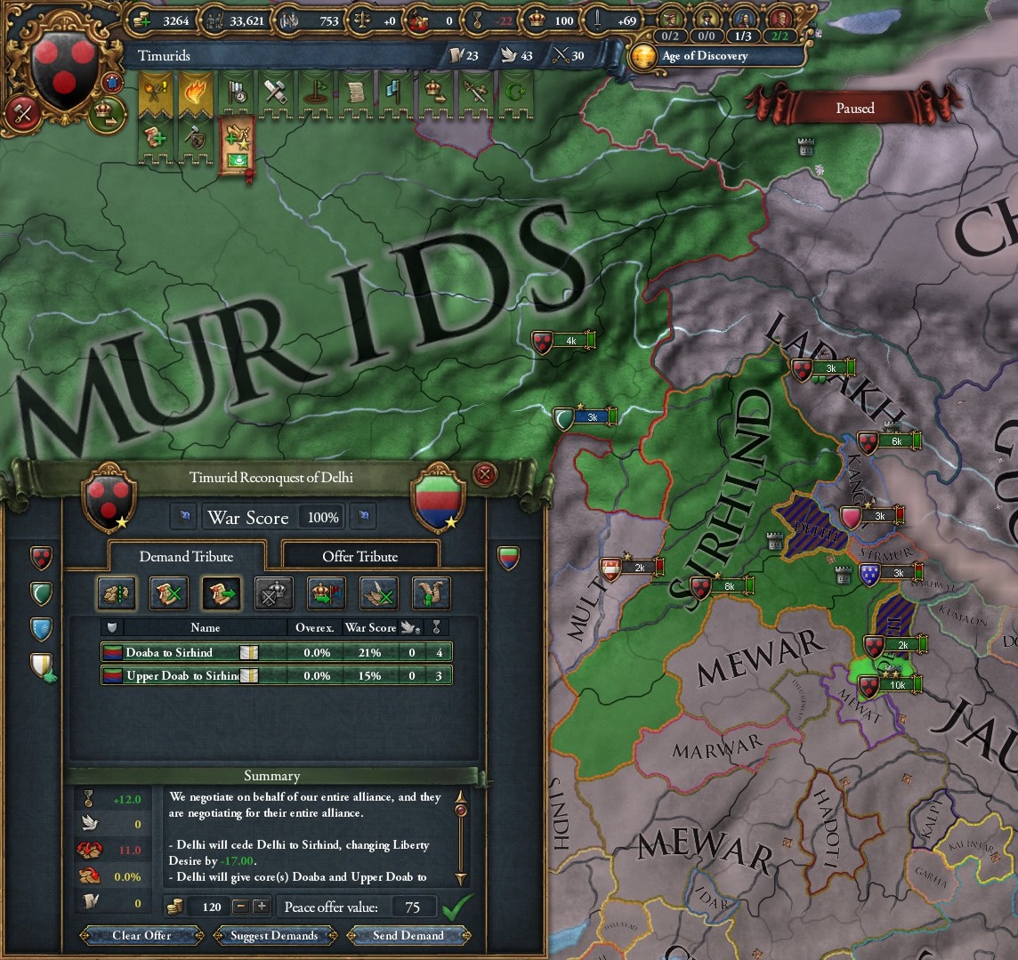 シルヒンド併合。ミッションツリーの第1,3,5列は全部達成できました。