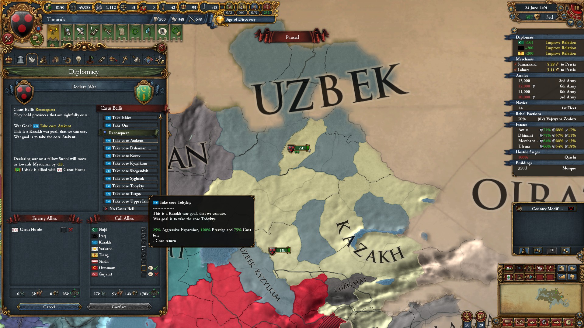 開戦事由に困らなくなり、AE-25%を獲得したことで、10年間戦争できなかった鬱憤を晴らすかのように拡張速度を速めます。
