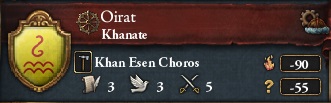 ちょっと画像が小さくてわかりにくいが、このスクリーンショットから十五世紀中葉の東アジア情勢を概観してみよう。まずでんと構えるわれらが中国(明)。東に目を転じれば、戦国時代に突入しようかという日本。将軍と大名家によって分割支配されている。そこから日本海をはさんで、儒教圏に中国、満州、朝鮮がある。北西に目をやればオイラート先輩がこっちを見ている。彼らはエセン・ハンに支配され、史実では土木の変で私たちの皇帝を捕虜にしたことで有名だ。