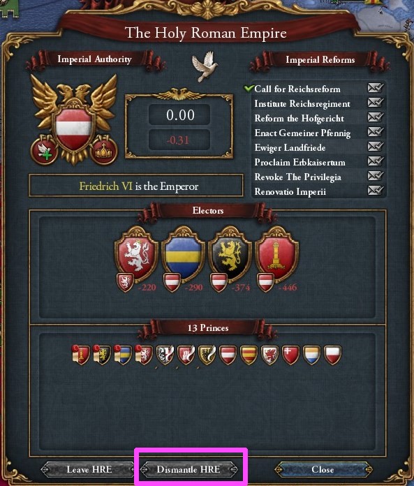 要は、全部の選帝侯が敵か味方として参加する状況でHRE皇帝に宣戦し、