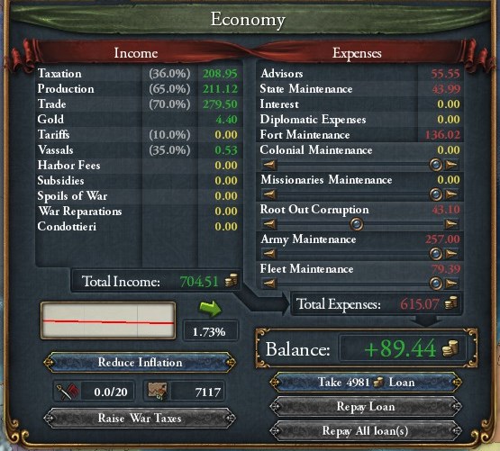 Tax・Production・Tradeそれぞれから案外均等に収入を得ていますが、それでもTradeが頭一つ抜けていますね。