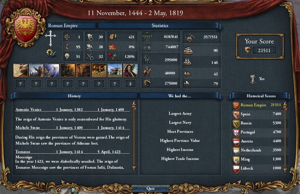 1821年までの65年で神聖ローマ帝国の解体を目指してプレイを再開しました。